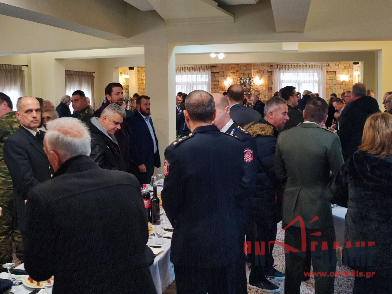 Παρόντες στην τελετή οι βουλευτές Πιερίας Σπύρος Κουλκουδίνας και Κομνηνός Δελβερούδης, εκπρόσωποι των βουλευτών Άννας Μάνη και Φώντα Μπαραλιάκου, η αντιπεριφερειάρχης Πιερίας Σοφία Μαυρίδου, ο δήμαρχος Δίου Ολύμπου Βαγγέλης Γερολιόλιος, ο πρόεδρος του Δημοτικού Συμβουλίου Κατερίνης Χαράλαμπος Μπρουσκέλης, ο αντιδήμαρχος Πύδνας Κολινδρού Στέλιος Χλεμές, εκπρόσωποι των σωμάτων ασφαλείας του νομού, ο Διευθυντής Δασών Πιερίας, η Σμαρώ Γιαννούλη ως εκπρόσωπος του ΕΒΕ Πιερίας, ο διοικητής του Γενικού Νοσοκομείου Κατερίνης, δημοτικοί και περιφερειακοί σύμβουλοι, καθώς και πλήθος κόσμου.