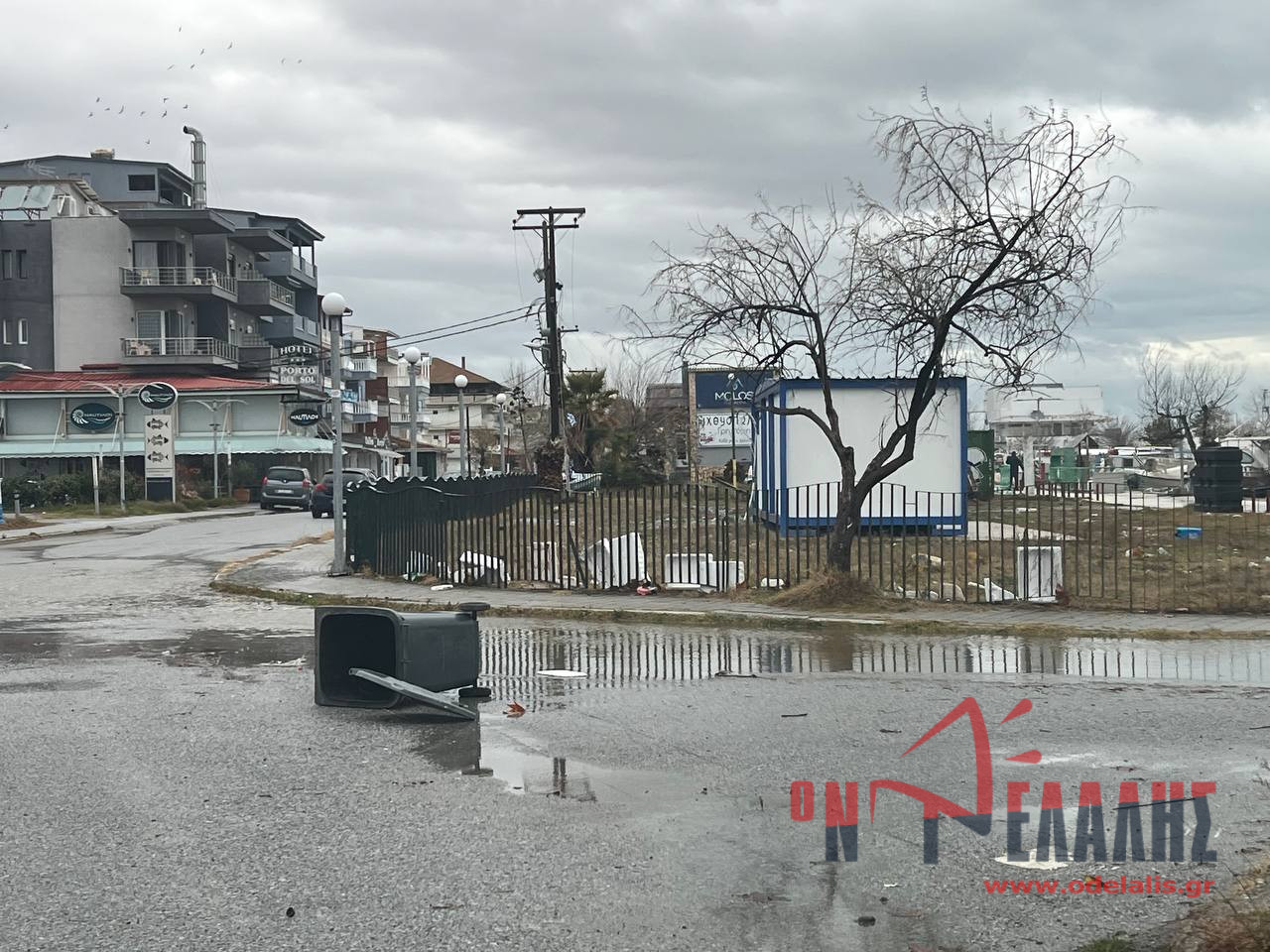 Η έντονη κακοκαιρία που έπληξε την περιοχή της Πιερίας προκάλεσε σοβαρές πλημμύρες στις περιοχές της Παραλίας και της Ολυμπιακής Ακτής Κατερίνης. Ισχυρές βροχοπτώσεις που συνεχίζονται, αλλά και οι ισχυροί άνεμοι, μετέτρεψαν δρόμους σε ποτάμια, προκαλώντας προβλήματα.