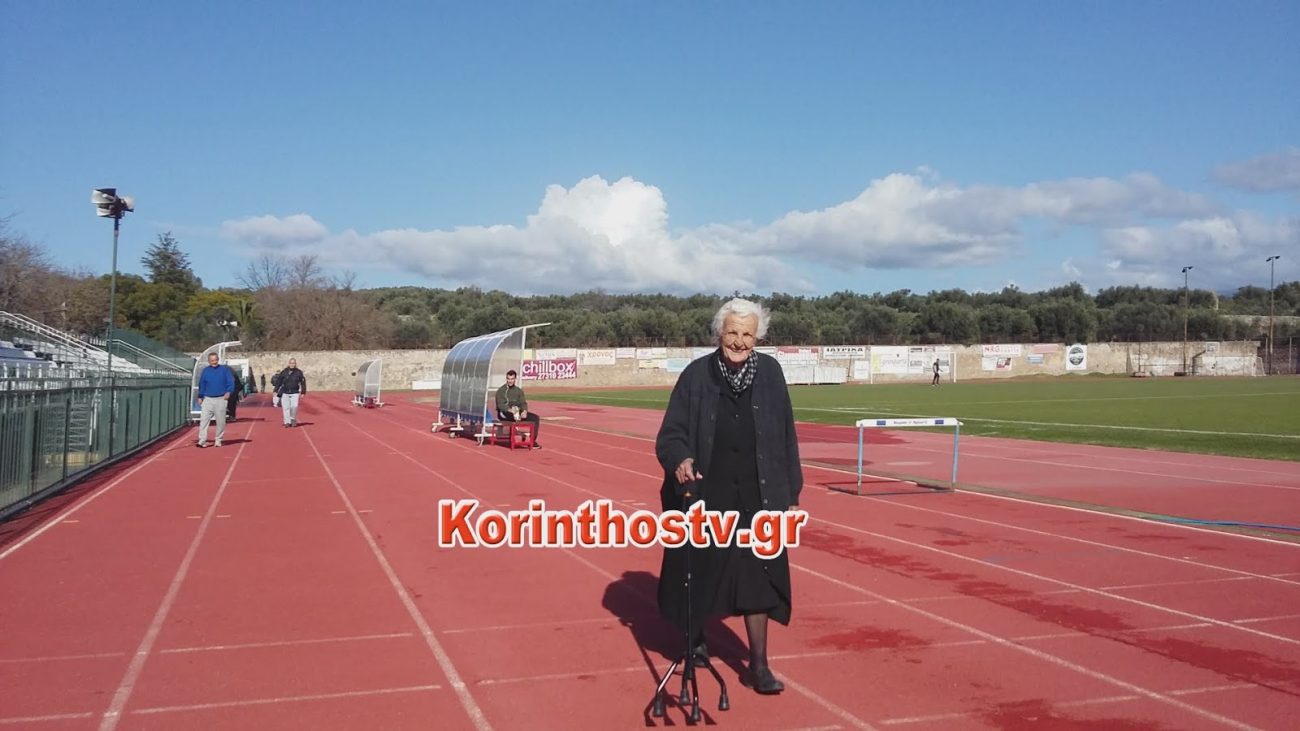 Τι και αν είναι 91 ετών; Η κ. Νίκη από τη Σπάρτη, όπου διαμένει, καθημερινά πηγαίνει και περπατάει στο Δημοτικό Στάδιο της πόλης έχοντας για παρέα το μπαστούνι της.