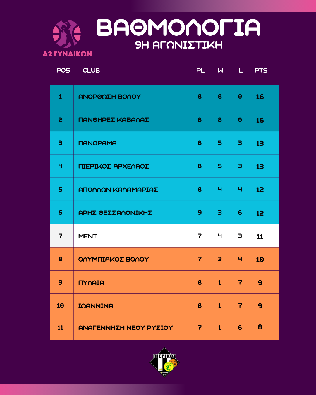 Α2 Γυναικών: ΣΦΚ Πιερικός Αρχέλαος – ΜΕΝΤ (10η αγωνιστική)