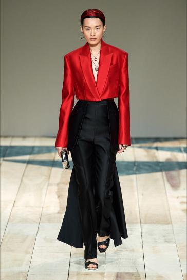 Λαμβάνοντας υπόψη το θέμα, αξίζει να σημειωθεί ότι το show του Alexander McQueen ήταν μία από τις λίγες περιπτώσεις όπου έχουμε δει μοντέλα με καμπύλες στα runways του Παρισιού για το 2020. Τα σχέδια περιελάμβαναν, ασυμμετρία, βολάν και τον εκρηκτικό συνδυασμό μαύρου με κόκκινο, δερμάτινα αξεσουάρ (οι ψηλές μπότες έδιναν sexy ύφος) και δαντέλα πλεγμένη στο βελονάκι! Τα αισθησιακά ανοίγματα σε συνδυασμό με την τολμηρή παλέτα έκαναν τα μοντέλα να θυμίζουν ταυρομάχους, ενώ τέλος και τα μαλλιά ήταν κατακόκκινα και πιασμένα σε sleek κότσους.