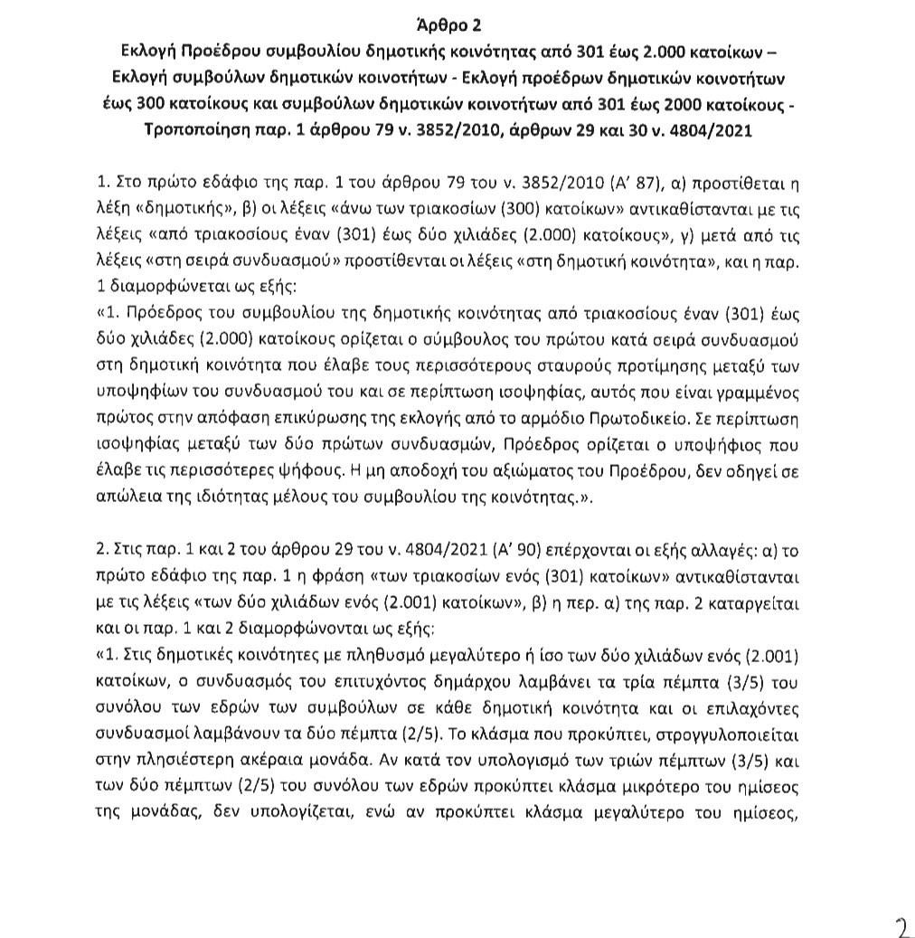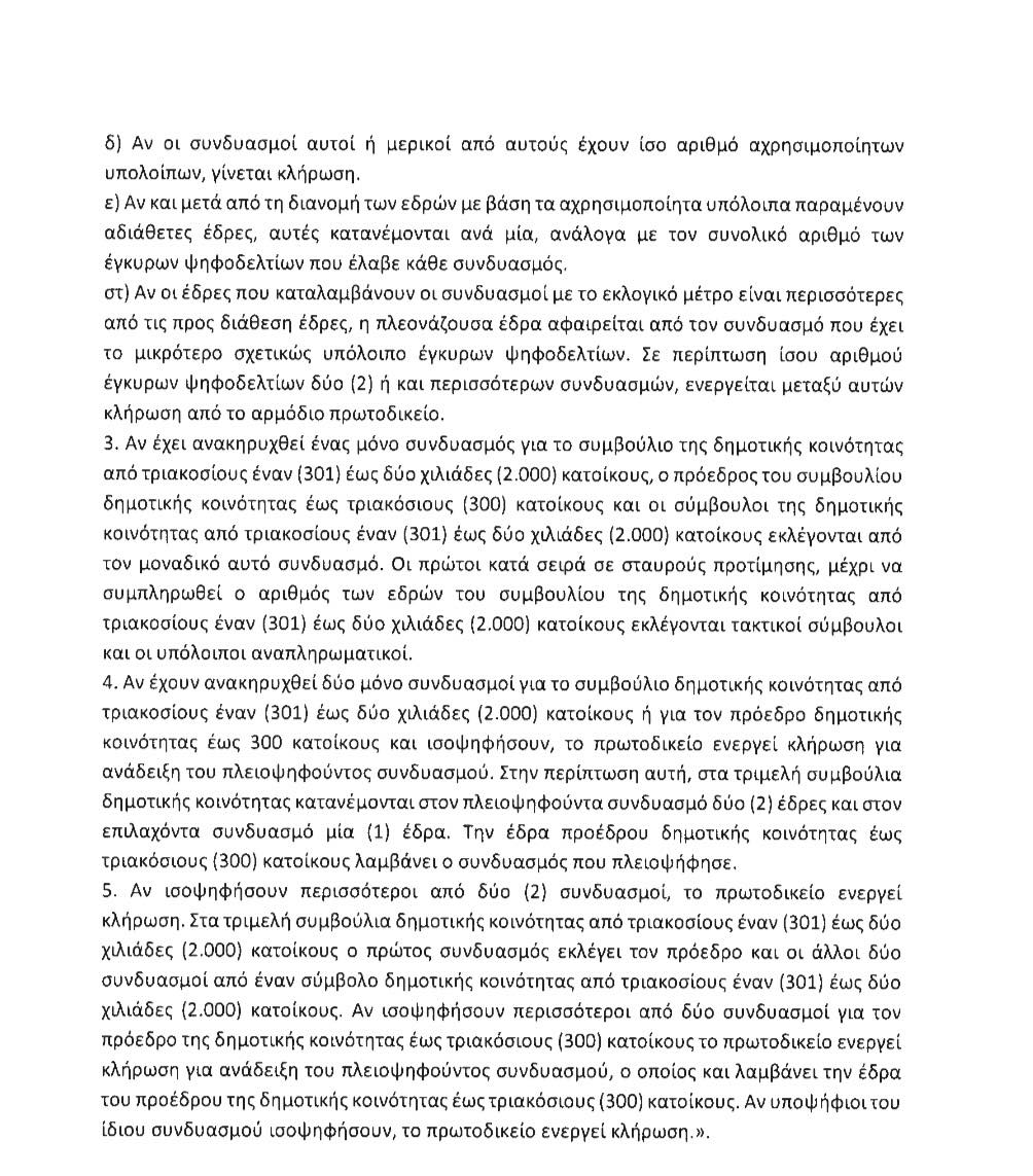 Σε κοινότητες κάτω των 200 κατοίκων, Πρόεδρος αναδεικνύεται ο πρώτος σε σταυρούς υποψήφιος του συνδυασμού έλαβε τις περισσότερες ψήφους την πρώτη Κυριακή των εκλογών.