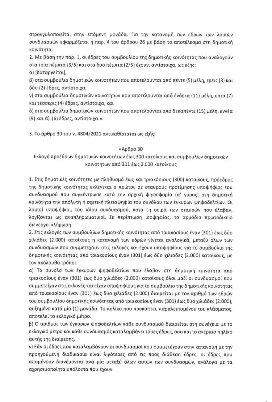 Η τροπολογία που εισηγήθηκε η πλειοψηφία στην αρμόδια επιτροπή, με εισηγητή τον Βουλευτή Κοζάνης Στάθη Κωνσταντινίδη, επαναφέρει ουσιαστικά το παλιό καθεστώς και έτσι σε κοινότητες από 201 έως 2000 κατοίκους Πρόεδρος αναδεικνύεται ο πρώτος σε σταυρούς υποψήφιος του συνδυασμού που έλαβε τις περισσότερες ψήφους στην κάθε κοινότητα την Α’ Κυριακή.