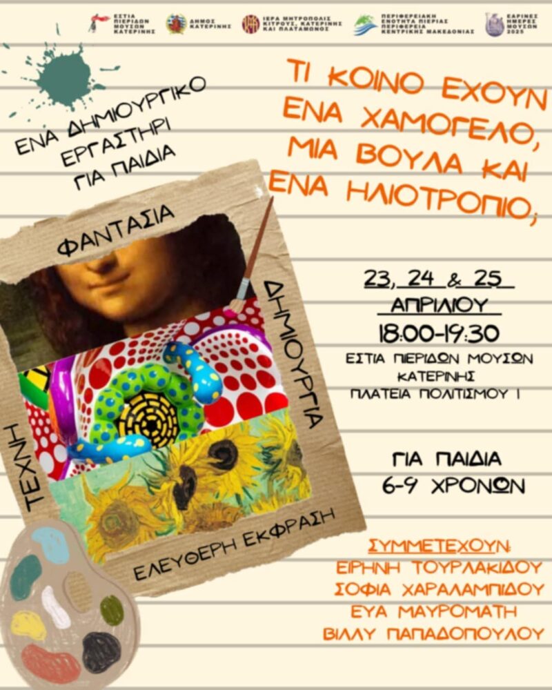 Η Εφορεία Λόγου και Τέχνης της Ε.Π.Μ. Κατερίνης στο πλαίσιο των “Εαρινών Ημερών Μουσών 2025”, με πολύ χαρά προσκαλεί τους μικρούς της φίλους να ανακαλύψουν “Τί κοινό έχουν ένα χαμόγελο,...