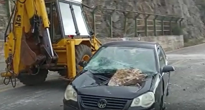 «Τύχη βουνό» για οδηγό – Βράχος προσγειώθηκε στο καπό του ΙΧ του εν κινήσει