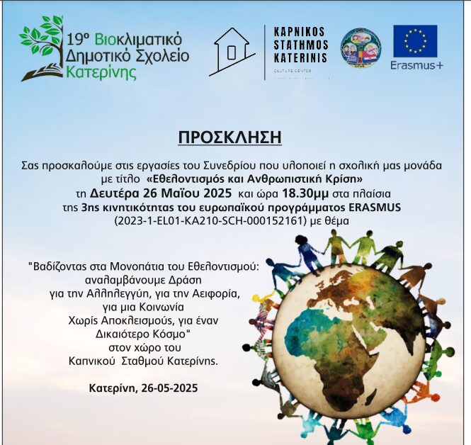 Συνέδριο για τον Εθελοντισμό και την ανθρωπιστική κρίση διοργανώνει το 19ο Δημοτικό Σχολείο Κατερίνης