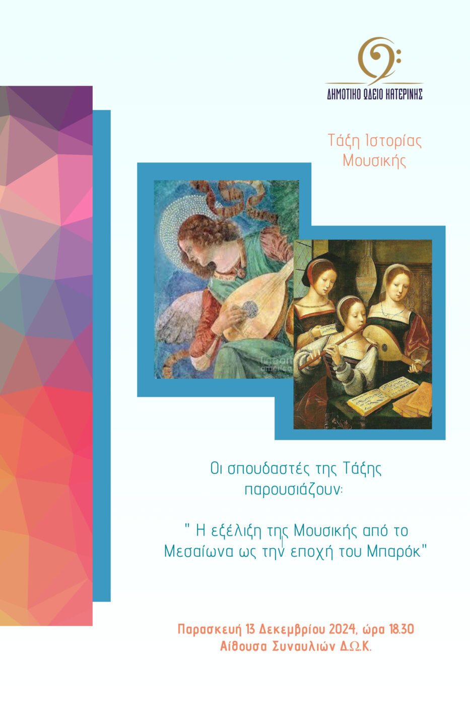 Δήμος Κατερίνης – Δημοτικό Ωδείο: «Η εξέλιξη της Μουσικής από το Μεσαίωνα ως την εποχή του Μπαρόκ» – παρουσίαση από τους σπουδαστές της Ιστορίας της Μουσικής