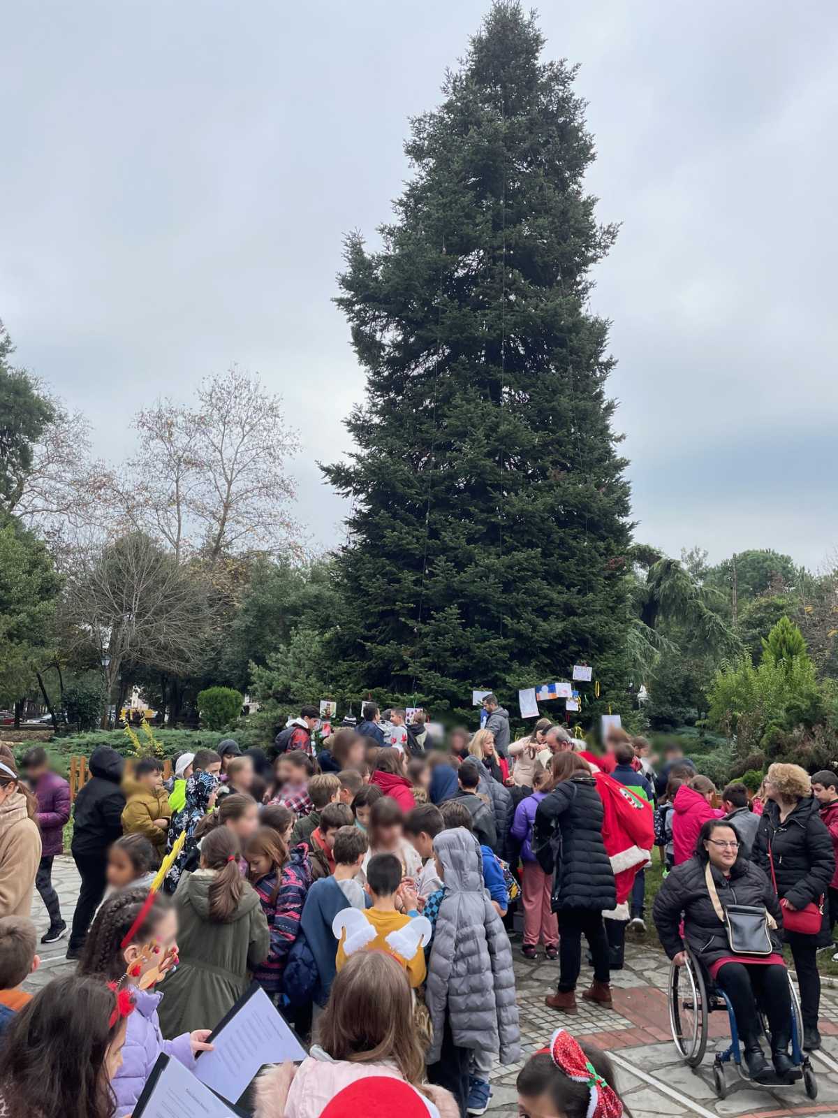 Τα παιδιά πέτυχαν να μεταδώσουν τη χαρά, την ελπίδα και την αγάπη σε όλους όσοι βρέθηκαν σήμερα στο δημοτικό πάρκο.  Παράλληλα, συντονίστηκαν στους χριστουγεννιάτικους ρυθμούς των εκδηλώσεων του Δήμου Κατερίνης και με ιδιαίτερη φροντίδα – δημιουργικότητα στόλισαν το πανύψηλο δέντρο με τις όμορφες ευχές τους.