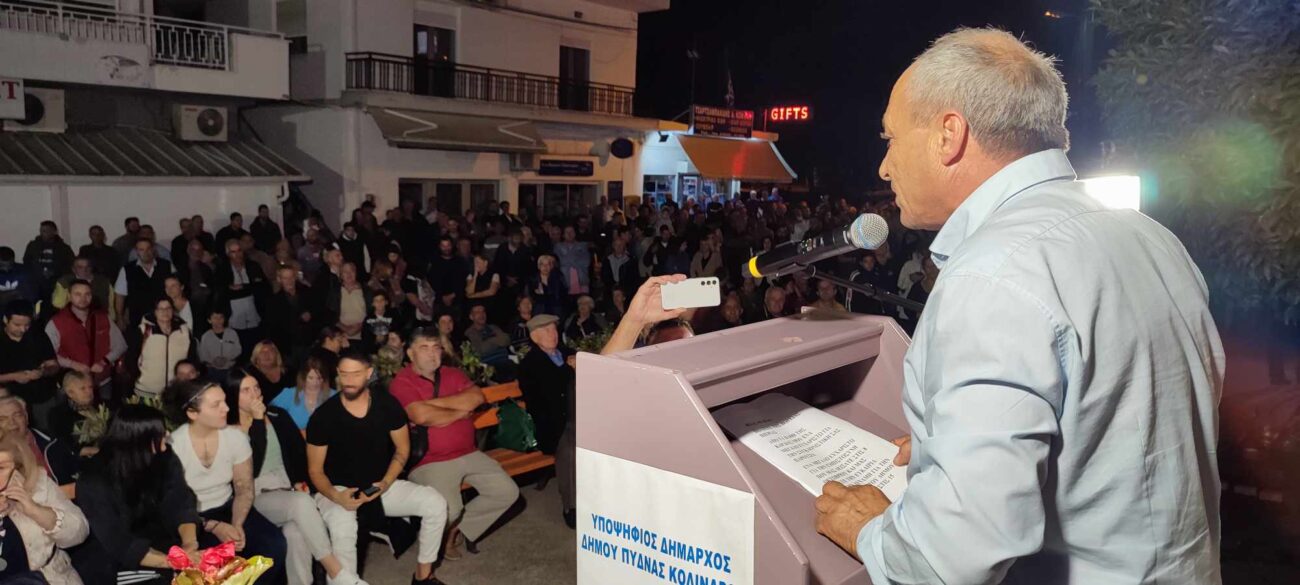 Ο Επικεφαλής της Δημοτικής Παράταξης «Ανανέωση και Δημιουργία» μπροστά σε ένα εξαιρετικά ενθουσιώδες πλήθος, γεμάτο και από νέους υποστηρικτές – ψηφοφόρους, προερχόμενοι από τον συνδυασμό του κ. Λαγδάρη, που ήρθαν κοντά στον Χρήστο Κομπατσιάρη και στον συνδυασμό, ξεδίπλωσε τον σχεδιασμό του. Όλοι αυτοί οι άνθρωποι ταυτίστηκαν με το όραμα για έναν Δήμο Πύδνας Κολινδρού ανθεκτικό, σύγχρονο, ανθρώπινο και αλληλέγγυο.
