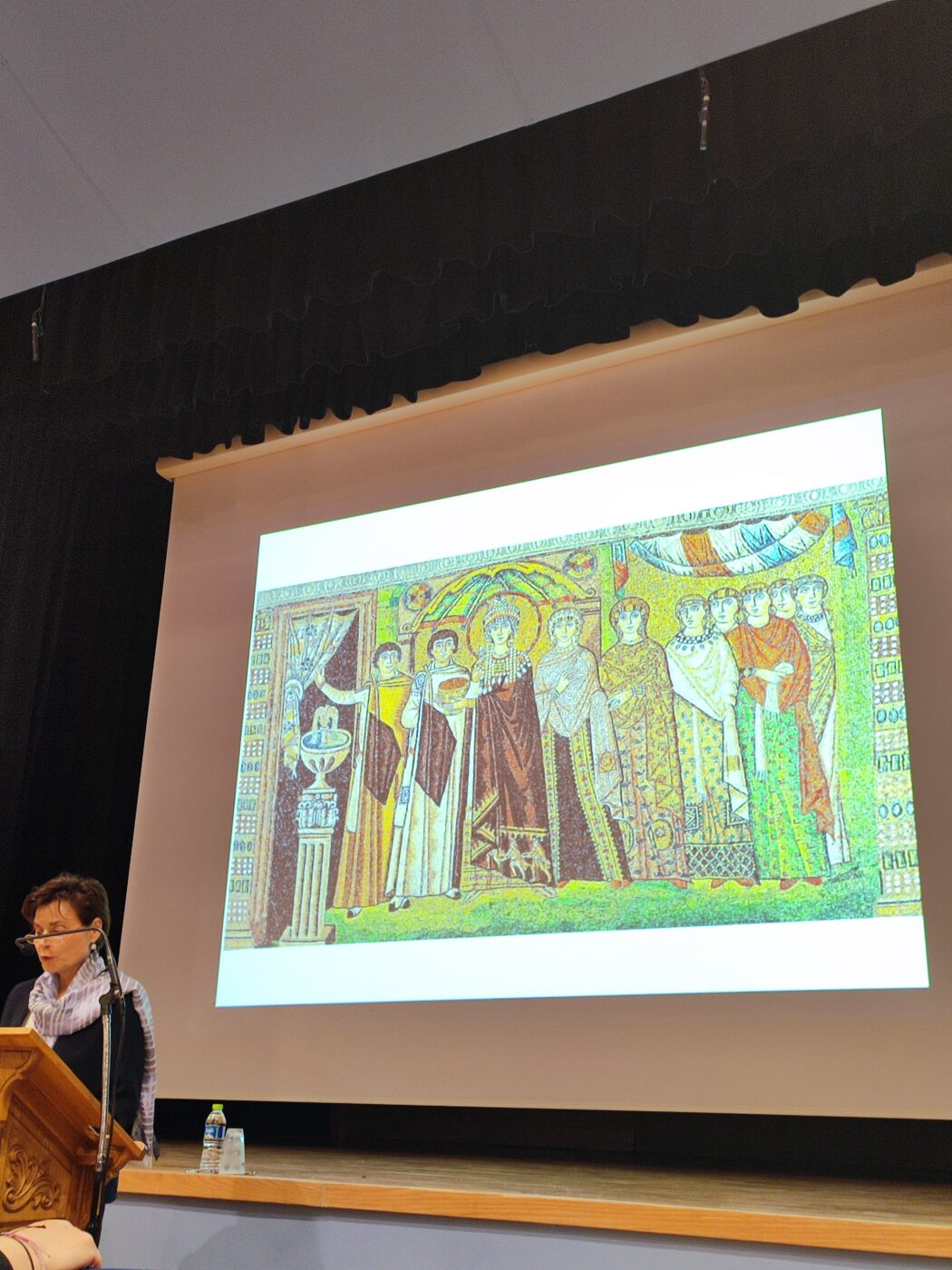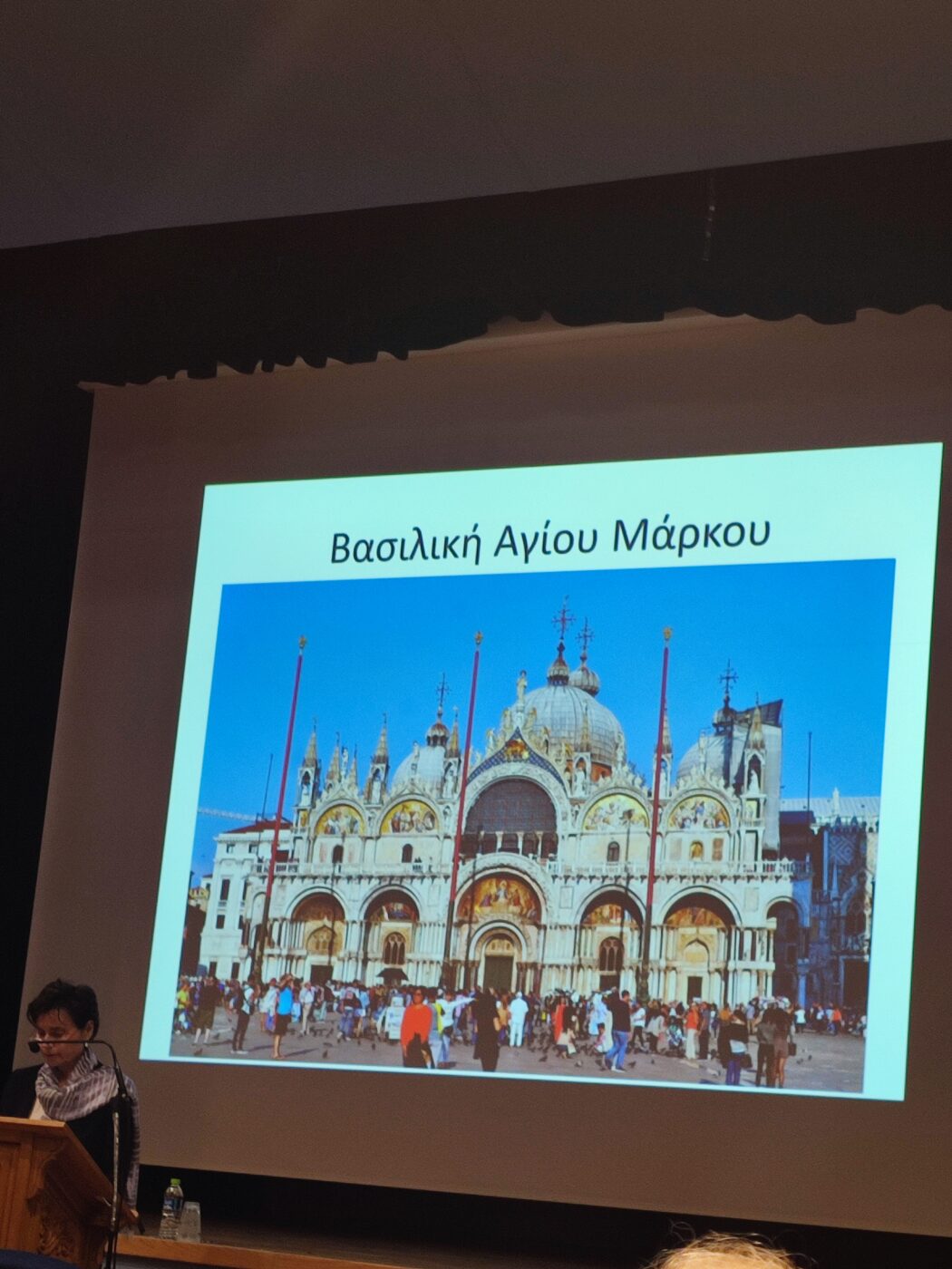 Όσοι παραβρέθηκαν στην ομιλία παρακολούθησαν καθηλωτικά, με αμέριστο ενδιαφέρον, πως επέδρασε η Βυζαντινή τέχνη στη Δύση, πως της κληροδότησε τη γνώση της ανθρώπινης μορφής ,του χρώματος και διάφορες τεχνικές και κυρίως το ψηφιδωτό. Σκιαγραφήθηκαν οι βασικές πορείες των Βυζαντινών καλλιτεχνικών ρευμάτων που επέδρασαν στη Δύση κυρίως στην τέχνη της ζωγραφικής ,με επιλεκτικά παραδείγματα.
