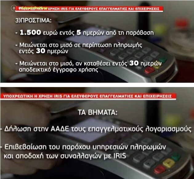 Οι επαγγελματίες που δεν θα συμμορφωθούν με τη χρήση POS και I.R.I.S. κινδυνεύουν με βαριά πρόστιμα