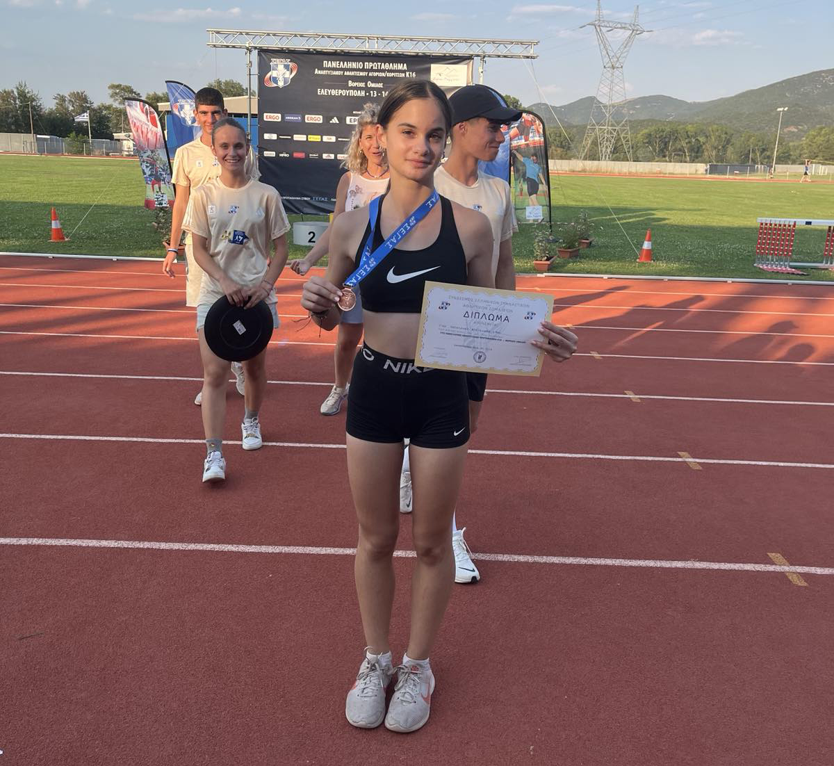 3η θέση και χάλκινο μετάλλιο για την Αλεξάνδρα Παπαγιάννη του ΓΑΣ Αρχέλαος Κατερίνης στα 80 μέτρα με εμπόδια με χρόνο 12.07 στο Πανελλήνιο Πρωτάθλημα Στίβου Κ16 στην Ελευθερούπολη Καβάλας που διεξήχθη το Σ/Κ 13/14 Ιουλίου 2024.