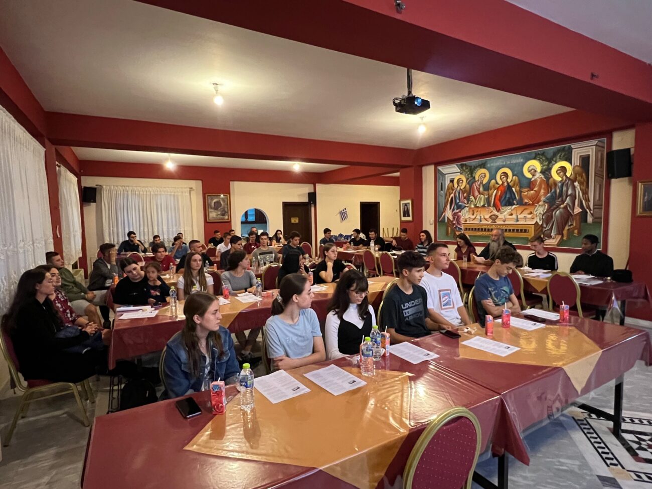 Η μετεκδρομική συνάντηση πραγματοποιήθηκε στο Πνευματικό Κέντρου του Ιερού Ναού Αγίων Χριστοφόρου και Ευθυμίου Κατερίνης , με τη συμμετοχή  κληρικών και πενήντα περίπου νέων, στελεχών του Γραφείου Νεότητας, που συμμετείχαν στο προσκύνημα.