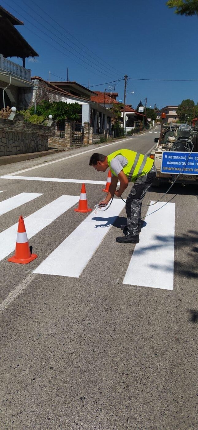 Εργασίες συντήρησης και βαψίματος των διαβάσεων στο οδικό δίκτυο αρμοδιότητας της Π.E. Πιερίας
