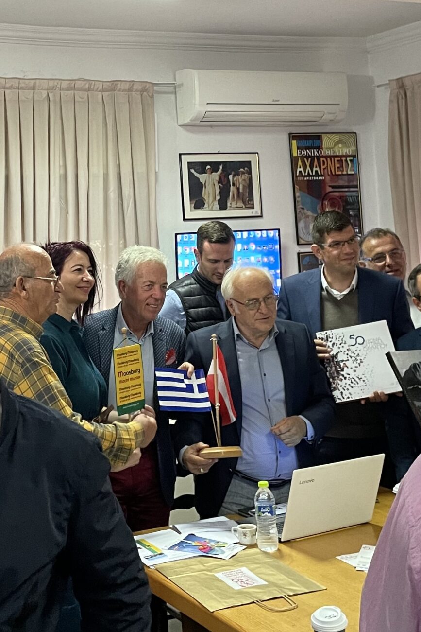 Την αντιπροσωπεία των μελών της αποστολής της αδελφοποιημένης με την Κατερίνη Αυστριακής πόλης, Μόουσμπουργκ, υποδέχθηκε την Τρίτη 17 Οκτωβρίου 2023 στους λειτουργικούς του χώρους, ο Οργανισμός Φεστιβάλ Ολύμπου.