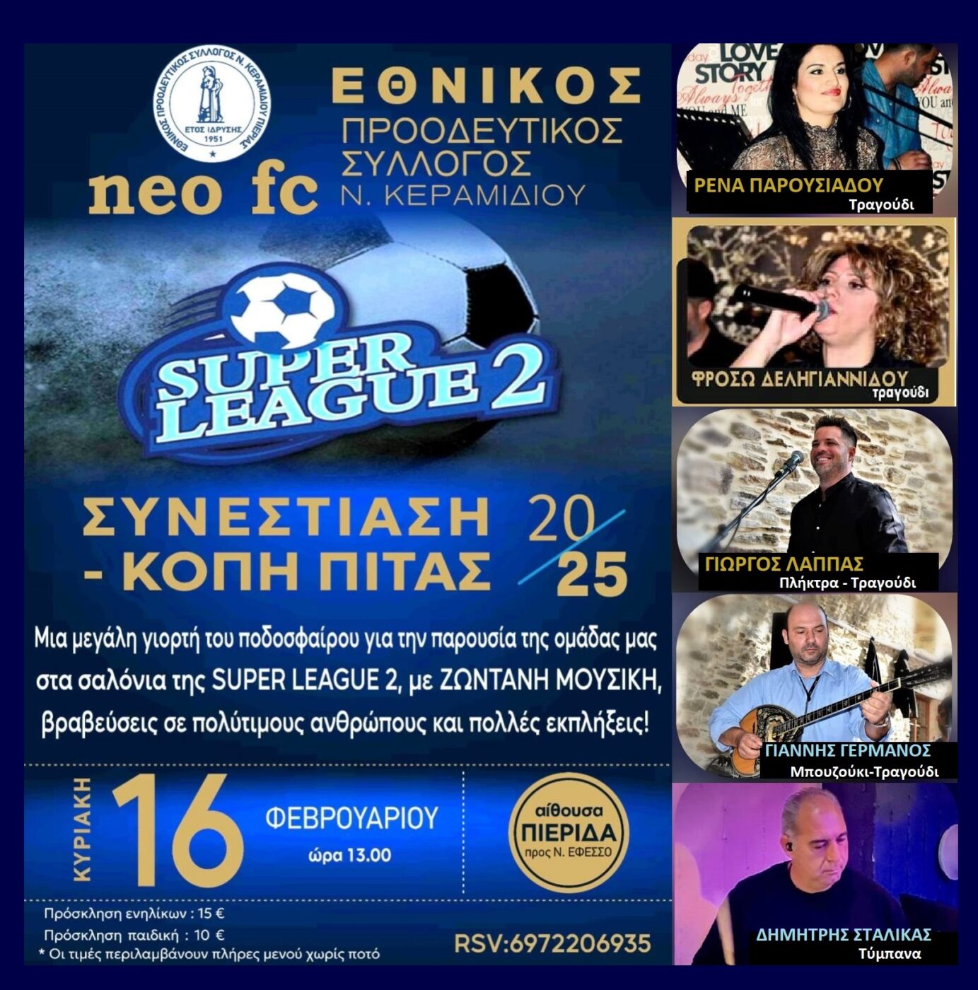 Μια μεγάλη γιορτή του ποδοσφαίρου για την παρουσία της ομάδας μας στα σαλόνια της Super League 2, με ζωντανή μουσική, βραβεύσεις σε πολύτιμους ανθρώπους και πολλές εκπλήξεις!