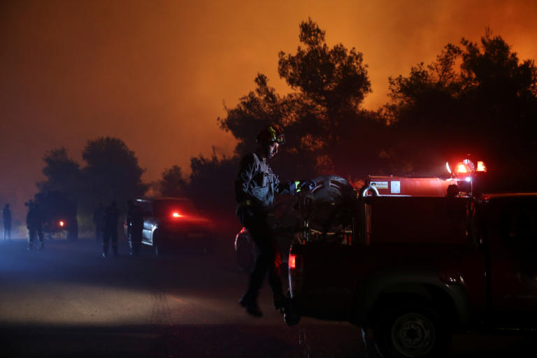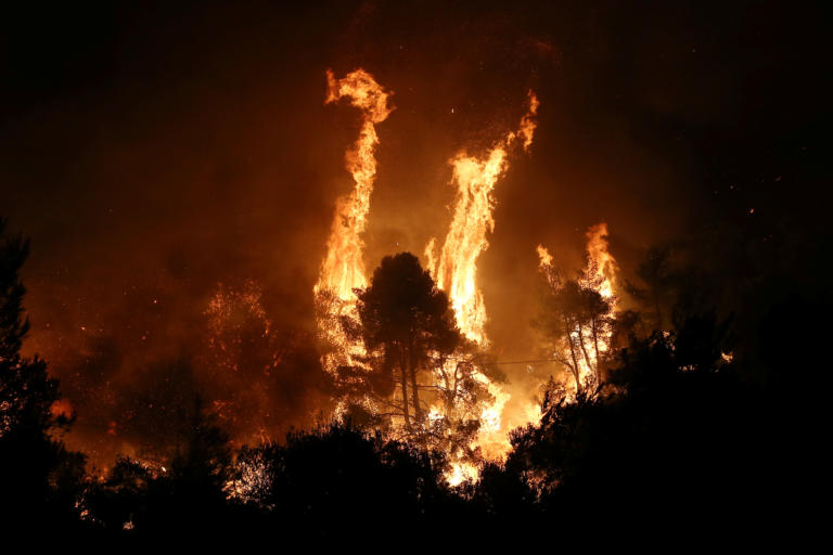 Νύχτα θρίλερ και μάχη με τις φλόγες που έφταναν ή ξεπέρασαν τα 20 μέτρα. Δεν θα ξεπεράσουν σήμερα τα 5 μποφόρ οι άνεμοι στην περιοχή.
