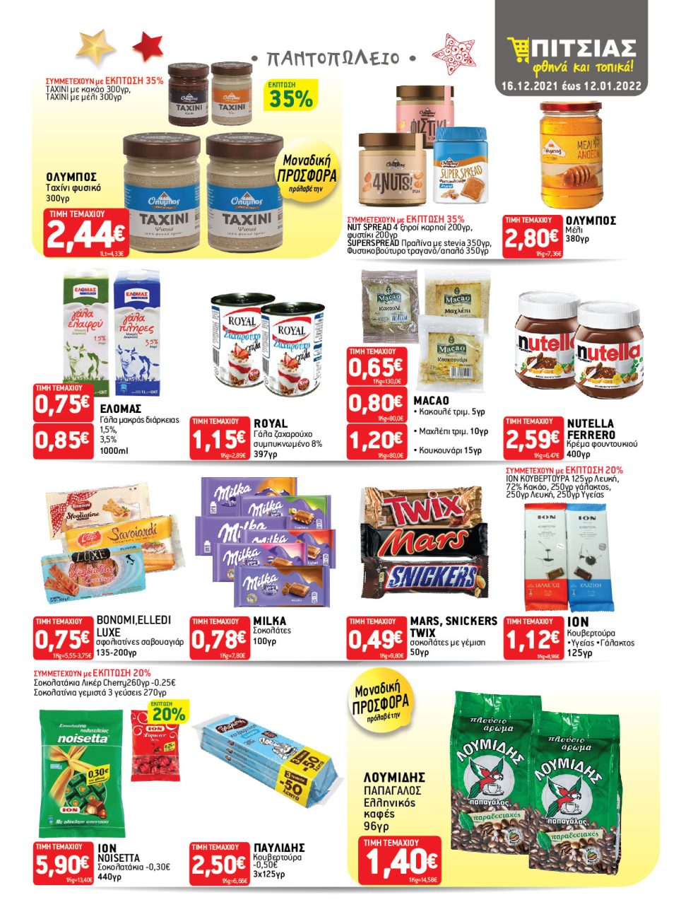 Φυλλάδιο ΠΙΤΣΙΑΣ ΜΑΡΚΕΤ από 16/12 έως και 12/01 – Και αυτές οι γιορτές θα είναι αξέχαστες με τις ειδικές προσφορές!