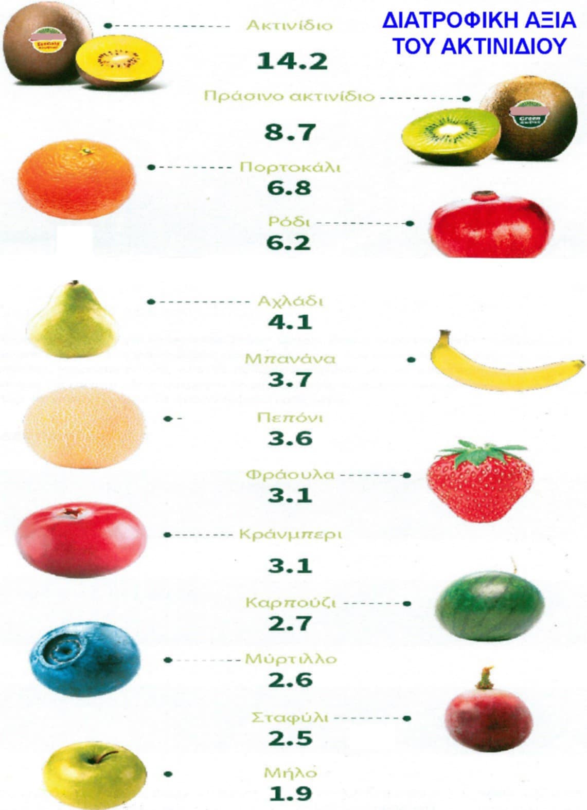 Δικαίως το Υπουργείο Γεωργίας των Η.Π.Α. με βάση την «διατροφική» αξία (Φωτογραφία Νο 2) από όλα τα παραγόμενα φρούτα του πλανήτη, έδωσε την μεγαλύτερη βαθμολογία στο ακτινίδιο.