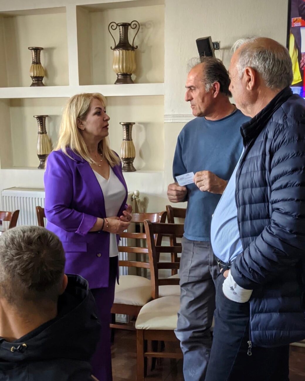 Οι κάτοικοι του χωριού την υποδέχτηκαν θερμά και συνομίλησαν μαζί της για ζητήματα της καθημερινότητάς τους και όχι μόνο. Στο επίκεντρο τα θέματα του πρωτογενή τομέα, καθώς πρόκειται για μια κατεξοχήν αγροτική περιοχή.