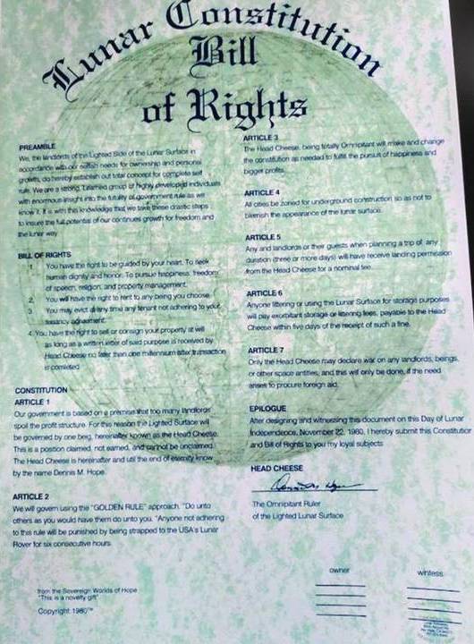 Το 1980 ο Dennis Hope επιδίωξε να γίνει και αυτός ο «κυρίαρχος» του φεγγαριού.