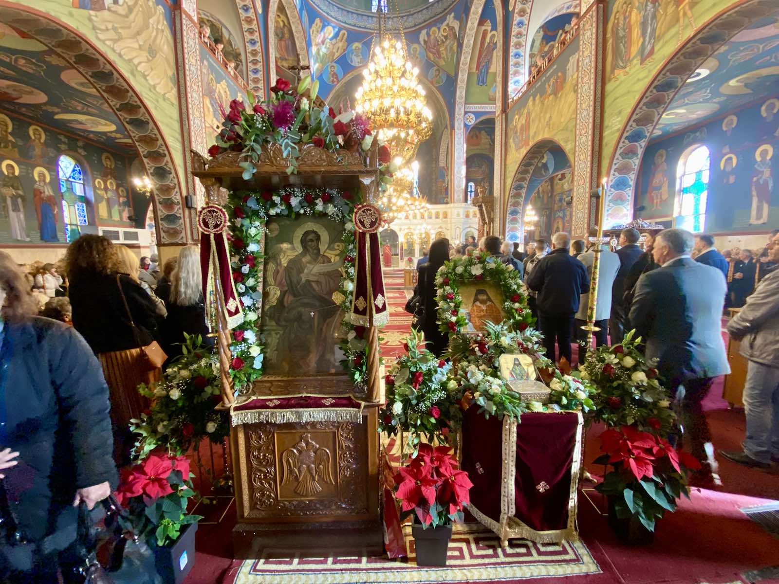 Δεκάδες πιστοί από την ευρύτερη περιοχή κατέκλυσαν τον Ιερό Ναό για να τιμήσουν την μνήμη του πολιούχου και προστάτη Αγίου του Αιγινίου και να προσκυνήσουν το απότμημα του ιερού του λειψάνου του Οσίου Γεωργίου (Καρσλίδη) το οποίο μεταφέρθηκε στον πανηγυρίζοντα Ιερό Ναό.