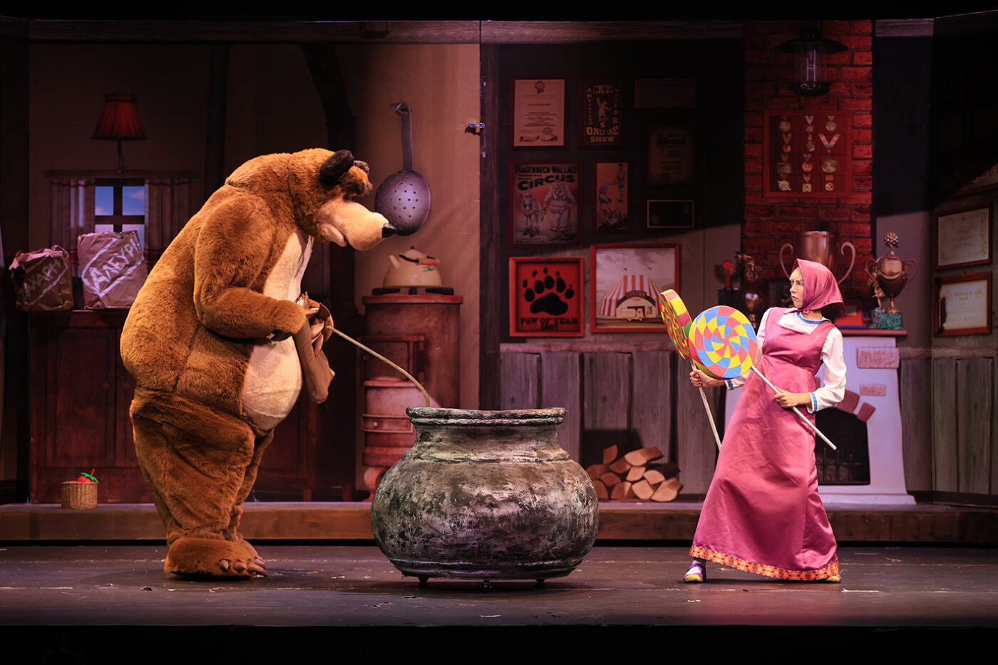 «Η Μάσα και ο Αρκούδος, μια μεγάλη γιορτή» η επίσημη θεατρική παράσταση, ζωντανεύει τον μαγικό κόσμο της παγκόσμιας επιτυχημένης σειράς κινουμένων σχεδίων. Με τα αυθεντικά κοστούμια του εξωτερικού.