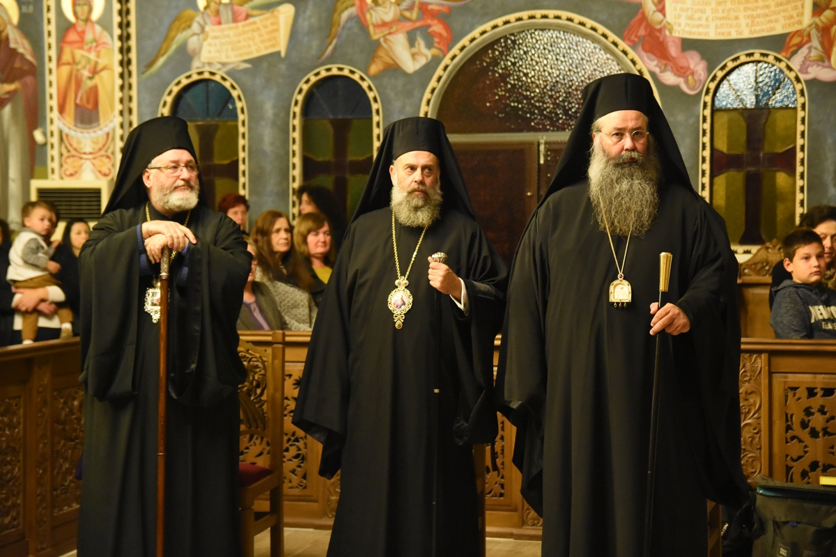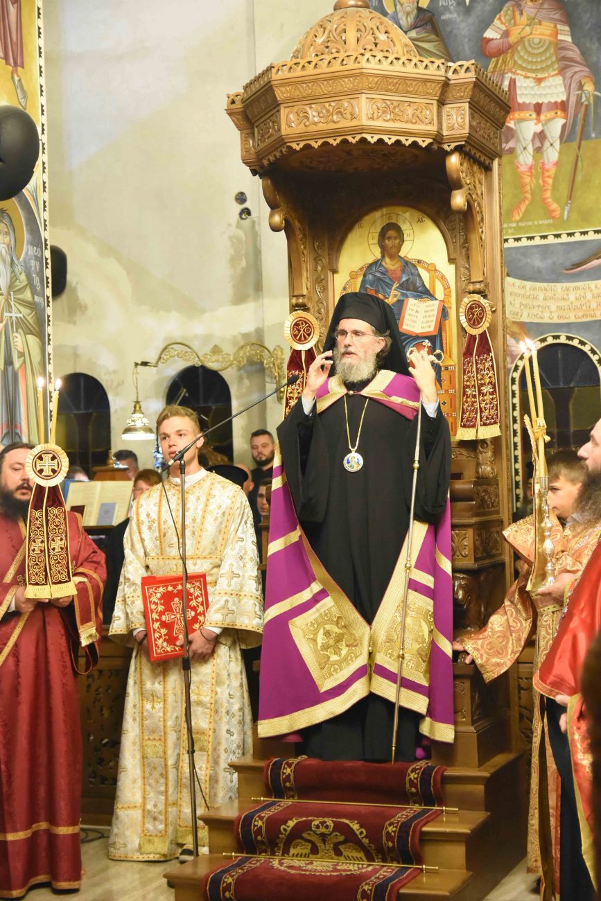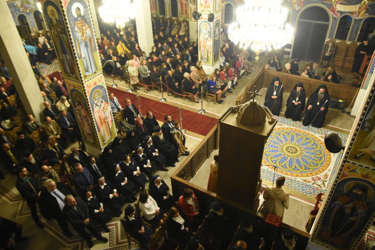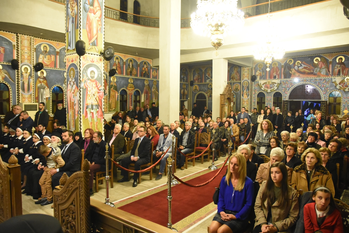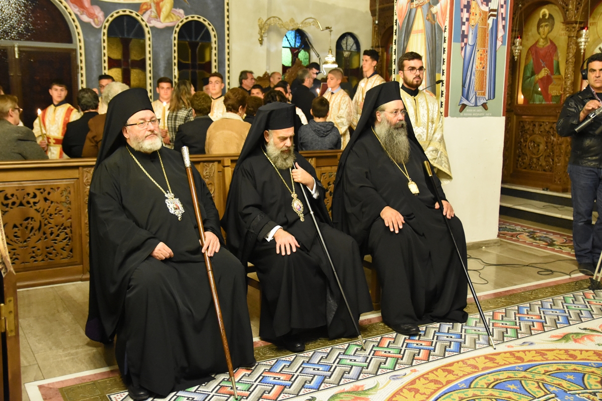 Συγκεκριμένα, το Σάββατο 2 Νοεμβρίου, παραμονή της εορτής, τελέστηκε ο Αρχιερατικός Εσπερινός με αρτοκλασία, χοροστατούντος του Θεοφιλεστάτου Επισκόπου Αρούσας και Κεντρικής Τανζανίας κ. Αγαθονίκου, ενώ συμπροσευχήθηκαν ο Σεβασμιώτατος Μητροπολίτης Θεσσαλιώτιδος και Φαναριοφερσάλων κ. Τιμόθεος, ο Θεοφιλέστατος Επίσκοπος Αμορίου κ. Νικηφόρος και ο εορτάζων Ποιμενάρχης κ. Γεώργιος.