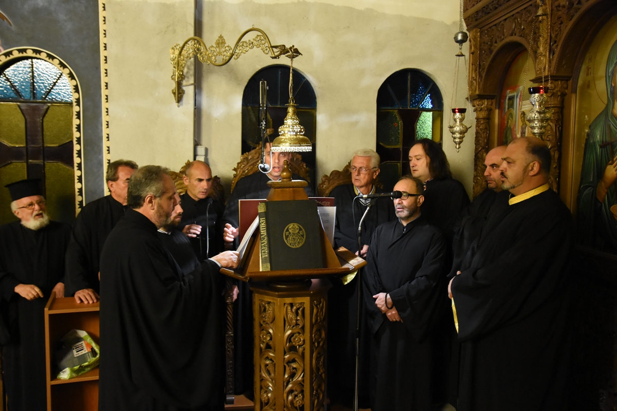 Κατά τις ιερές ακολουθίες τους πολυμελείς χορούς πλαισίωσαν μέλη του Συλλόγου Ιεροψαλτών Πιερίας «Όσιος Διονύσιος εν Ολύμπω», της Σχολής Βυζαντινής Μουσικής της Ιεράς Μητροπόλεως και της χορωδίας του Μουσικού Σχολείου Κατερίνης, υπό τη διεύθυνση των πρωτοψαλτών κ.κ. Νικολάου Ξάφη, Στέφανου Σπανού, Νικολάου Φακαλή, Λάζαρου Τζορμπατζίδη και Ευθυμίου Τσικόπουλου.