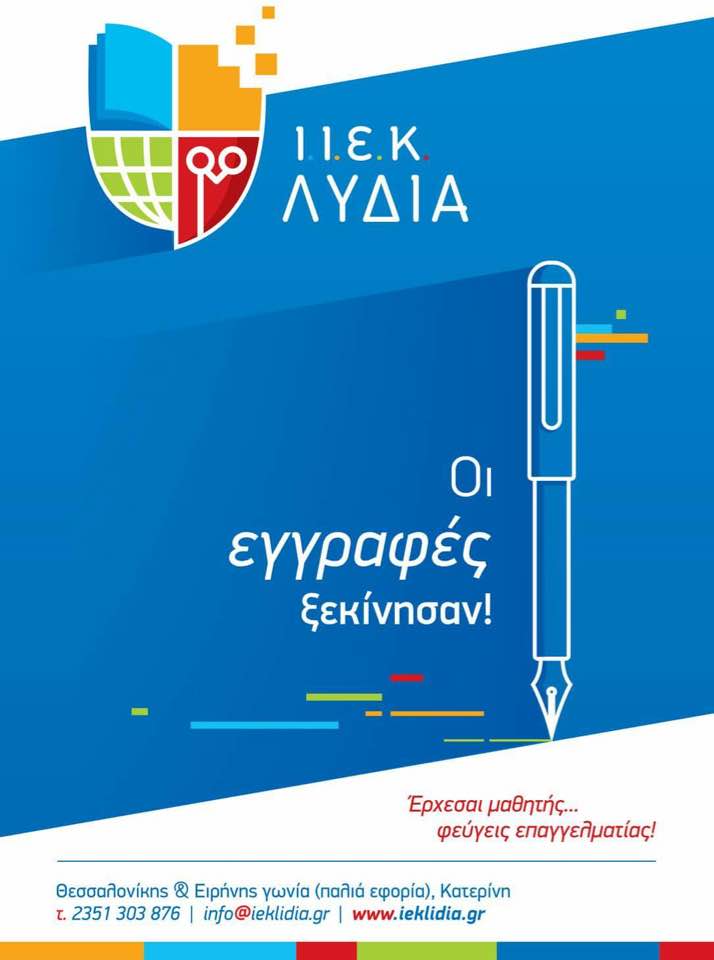 ΙΕΚ ΛΥΔΙΑ στην Κατερίνη – 10% έκπτωση για προεγγραφές μέχρι 15 Αυγούστου