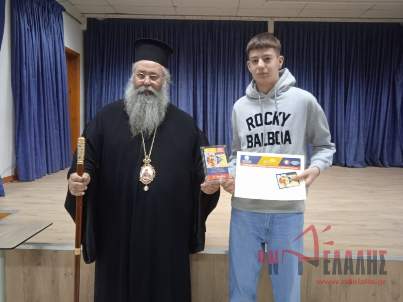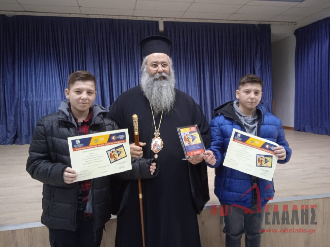 Στην αρχή της εκδήλωσης βραβεύτηκαν οι μαθητές γυμνασίων – λυκείων που έλαβαν μέρος στον μαθητικό διαγωνισμό ψηφιακού βίντεο της Ιεράς Μητρόπολης Κίτρους Κατερίνης και Πλαταμώνος για την επέτειο 100 χρόνων από τη Μικρασιατική Καταστροφή, με θέμα «Μνήμη μου σε λένε Μικρασία». Το Α’ βραβείο έλαβε ο μαθητής του Λυκείου Λιτοχώρου Νίκος Φαργκάνης, ενώ το Β’ βραβείο έλαβαν τα δίδυμα αδέλφια από τον Κολινδρό Γιώργος και Βαγγέλης Χαλκιάς. Οι απονομές έγιναν από τον Σεβασμιότατο Μητροπολίτη Κίτρους, Κατερίνης και Πλαταμώνος κ. Γεώργιο, ο οποίος συνεχάρη τους μαθητές για τη συμμετοχή τους στον διαγωνισμό. Προηγήθηκε η προβολή των βίντεο των παιδιών που είχαν ετοιμάσει για τον διαγωνισμό.