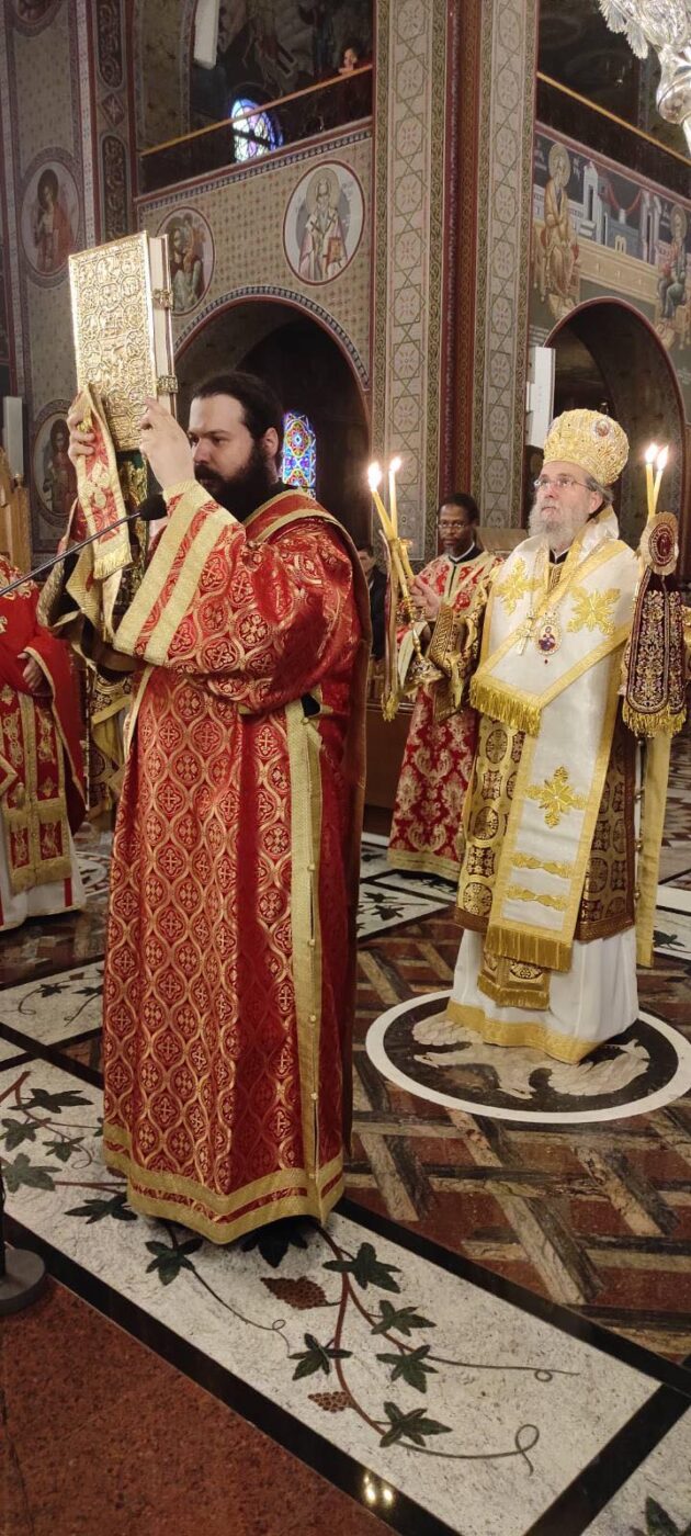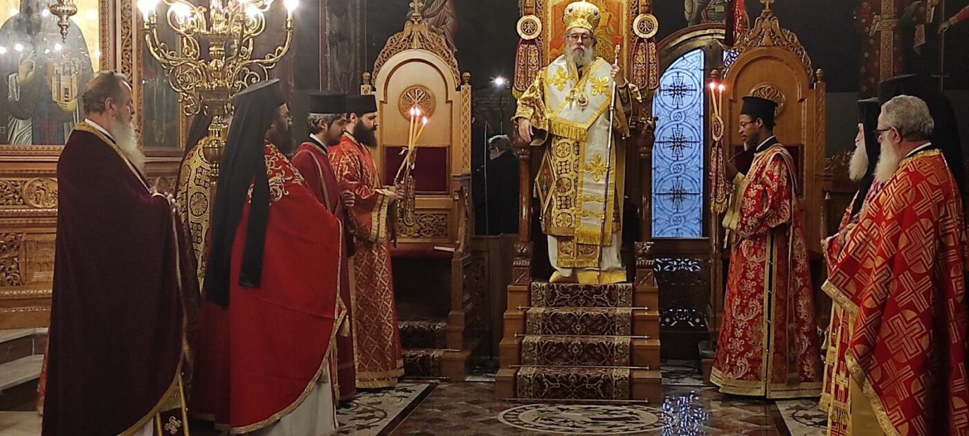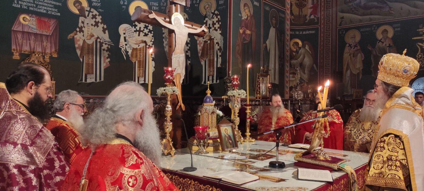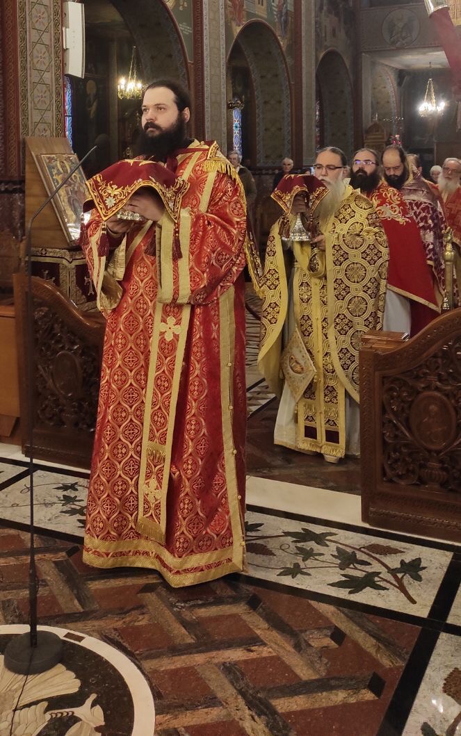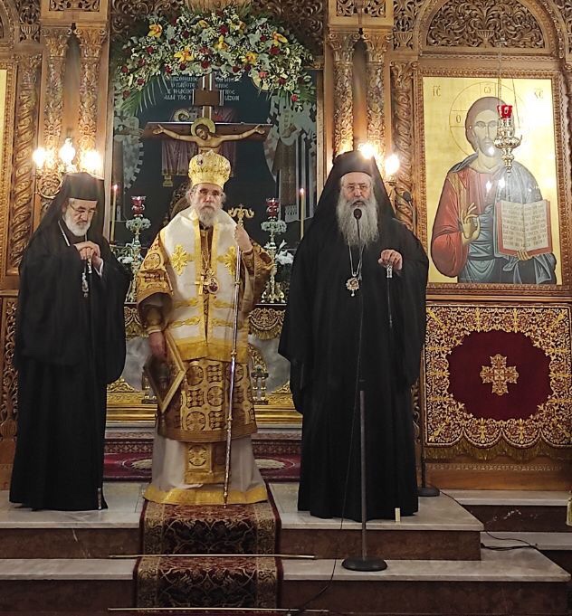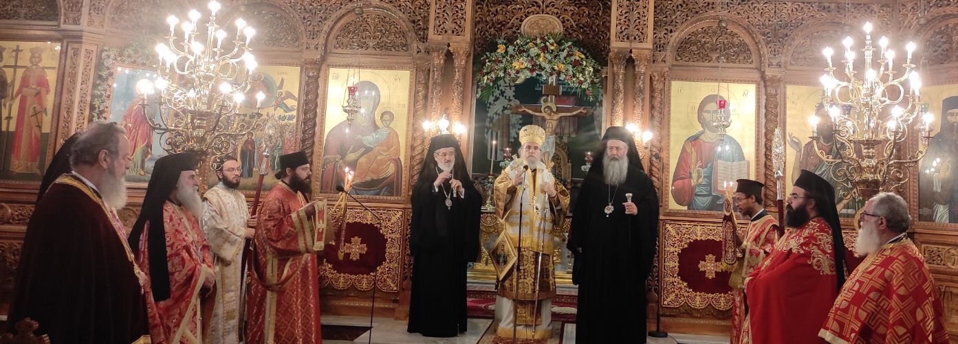 Το πρωί της κυριώνυμης ημέρας, τελέστηκε Αρχιερατικό Συλλείτουργο, προεξάρχοντος του Θεοφιλεστάτου Επισκόπου Αρούσας και Κεντρικής Τανζανίας κ. Αγαθονίκου και συμπροσευχομένων των Σεβασμιωτάτων Μητροπολιτών Τριπόλεως και Λιβύης κ. Θεοφυλάκτου και του οικείου Ποιμενάρχου κ. Γεωργίου.