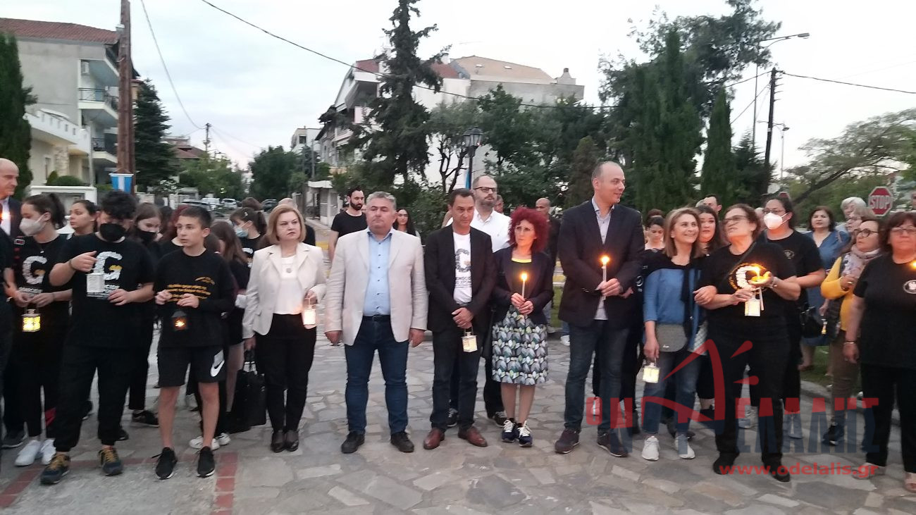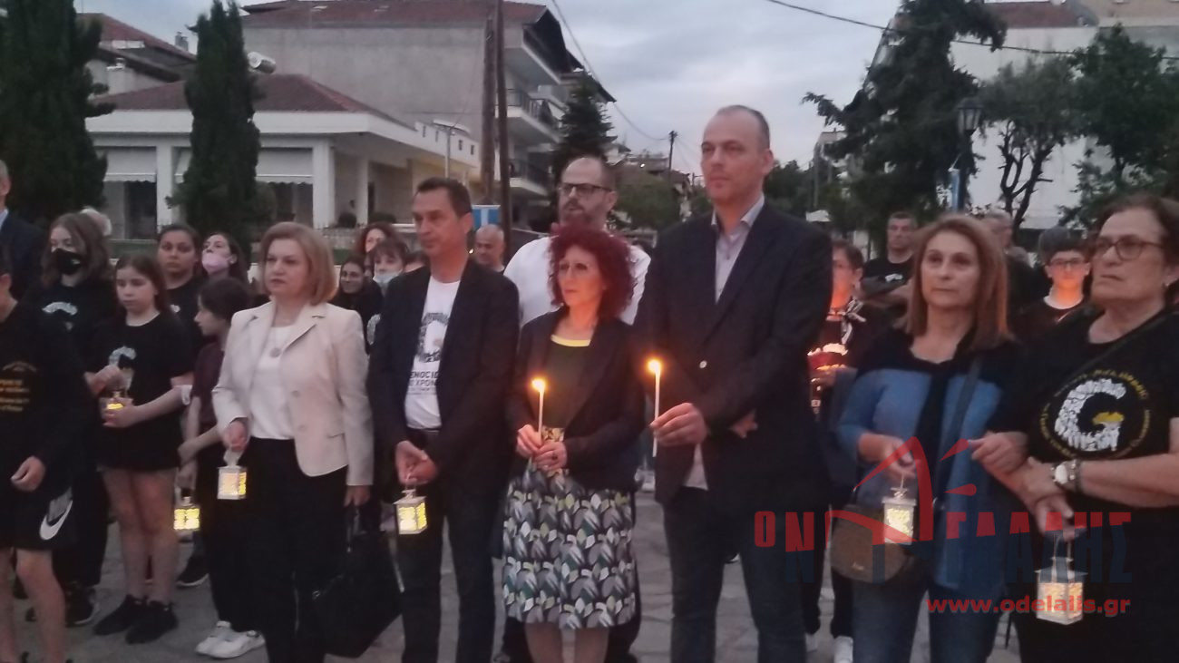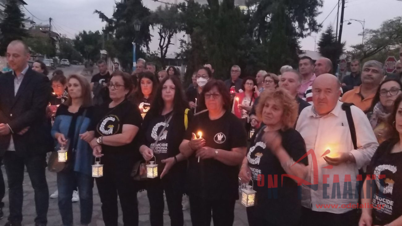 Κρατώντας αναμμένα φαναράκια στα χέρια έκαναν πορεία, από την πλατεία Ελευθερίας μέχρι το μνημείο της οδού 19ης Μαϊου, όπου ακολούθησε μια λιτή εκδήλωση και τηρήθηκε ενός λεπτού σιγή. Στο τέλος, έγινε εναπόθεση της φλόγας στο μνημείο. Η εκδήλωση πραγματοποιήθηκε με πρωτοβουλία της Κεντρικής Ένωσης Δήμων Ελλάδας (ΚΕΔΕ), στο πλαίσιο ΕΚΔΗΛΩΣΗΣ ΤΟΥ ΔΙΚΤΥΟΥ ΠΟΛΕΩΝ ΜΕ ΠΟΝΤΙΑΚΕΣ ΚΟΙΝΟΤΗΤΕΣ: «Η ΦΛΟΓΑ ΤΗΣ ΜΝΗΜΗΣ».