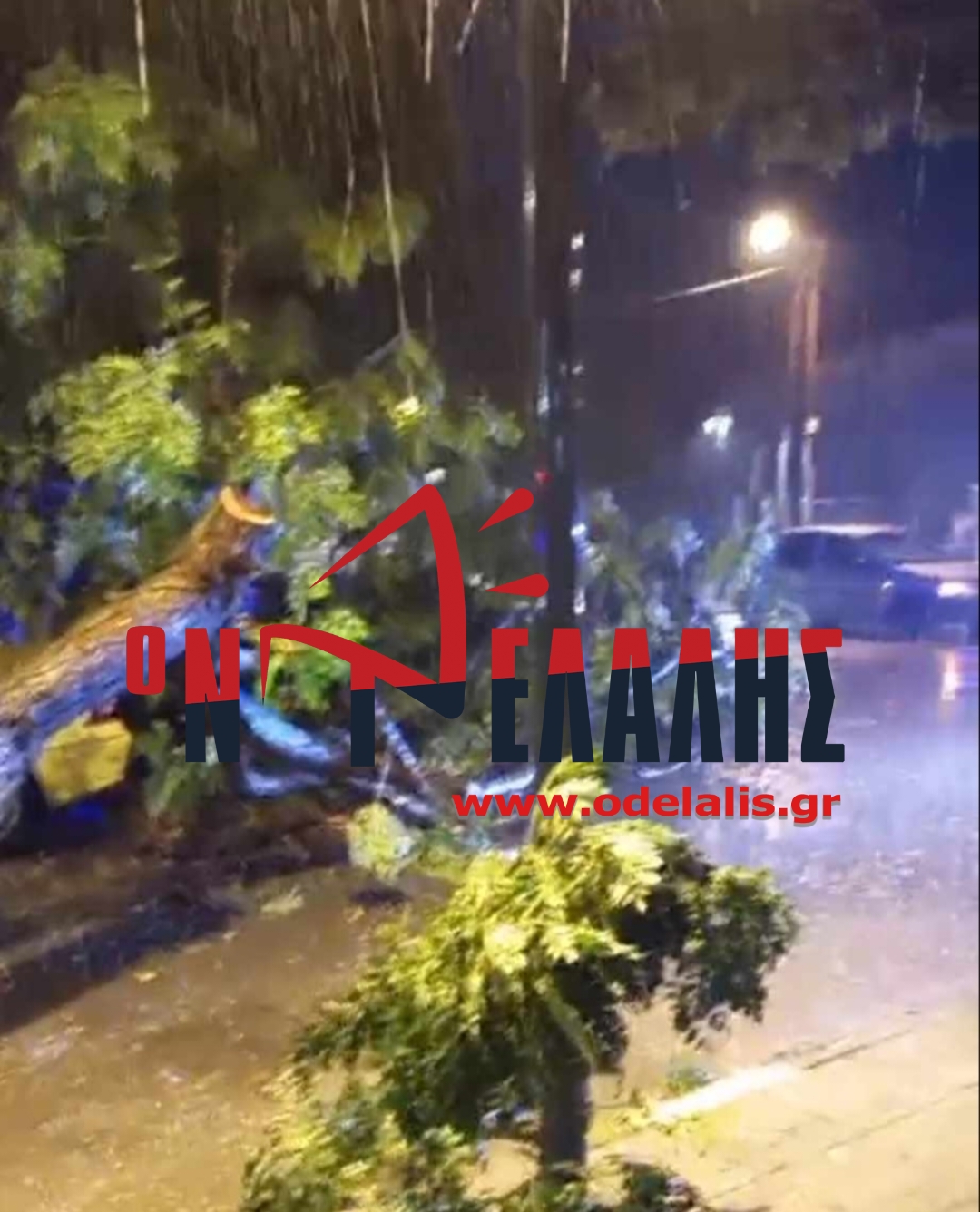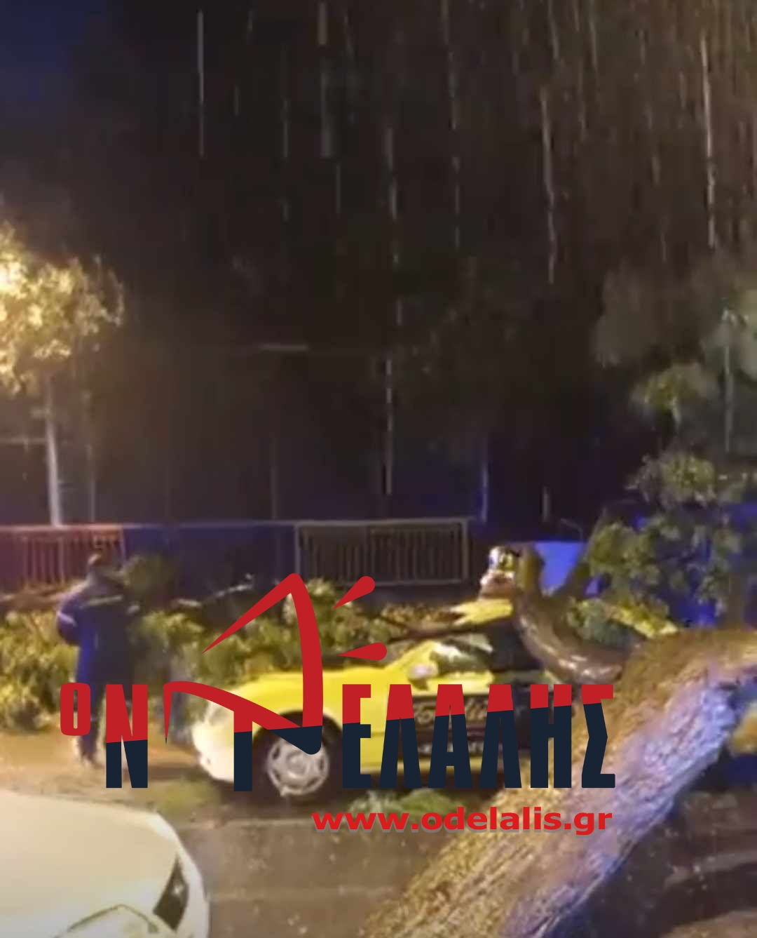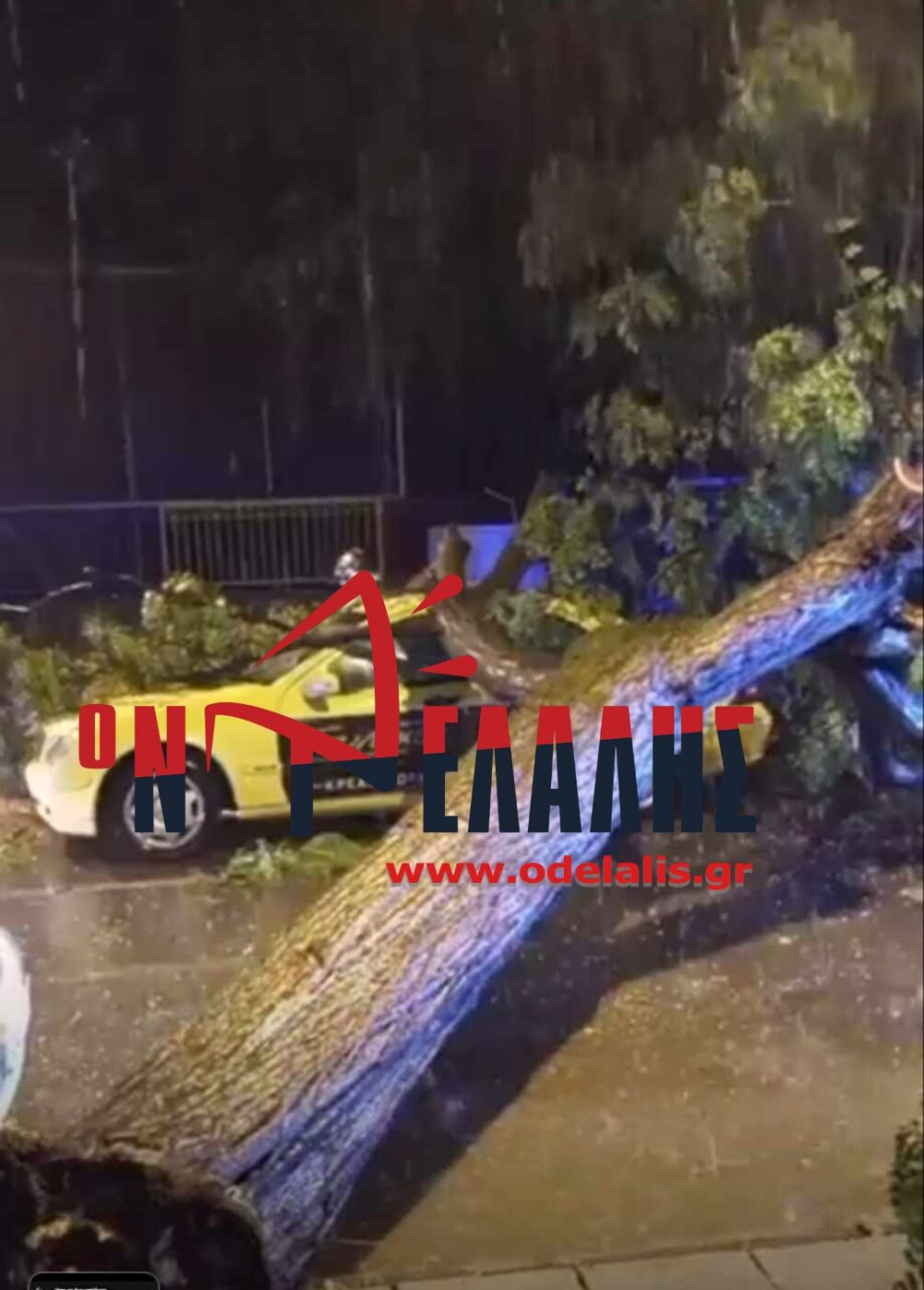Ζημιές σε ταξί και τον τραυματισμό του οδηγού του προκάλεσε, λίγο νωρίτερα, δέντρο που έπεσε μόλις άρχισε η καταρρακτώδης βροχή στα Καταφιώτικα.