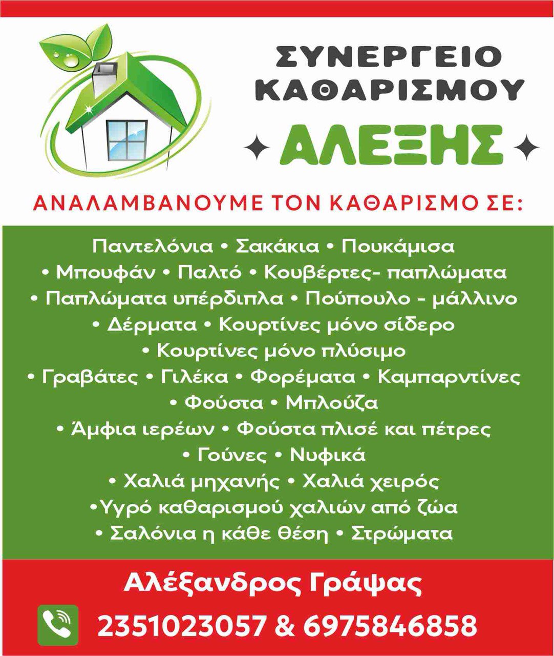 🧼 Ειδική προσφορά για τους αναγνώστες μας – καθαριστήριο Αλέξης 🧼
