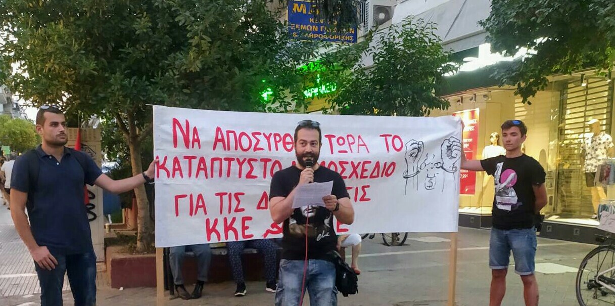 Να αποσυρθεί τώρα το νομοσχέδιο-έκτρωμα για τις διαδηλώσεις απαίτησαν με τις κινητοποιήσεις τους το ΚΚΕ και η ΚΝΕ στην Κατερίνη, την Πέμπτη 2/7.