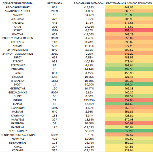 Ανακοινώθηκαν πριν από λίγο από τον ΕΟΔΥ, τα κρούσματα κορωνοϊού για την εβδομάδα από 14 έως 20 Νοεμβρίου.