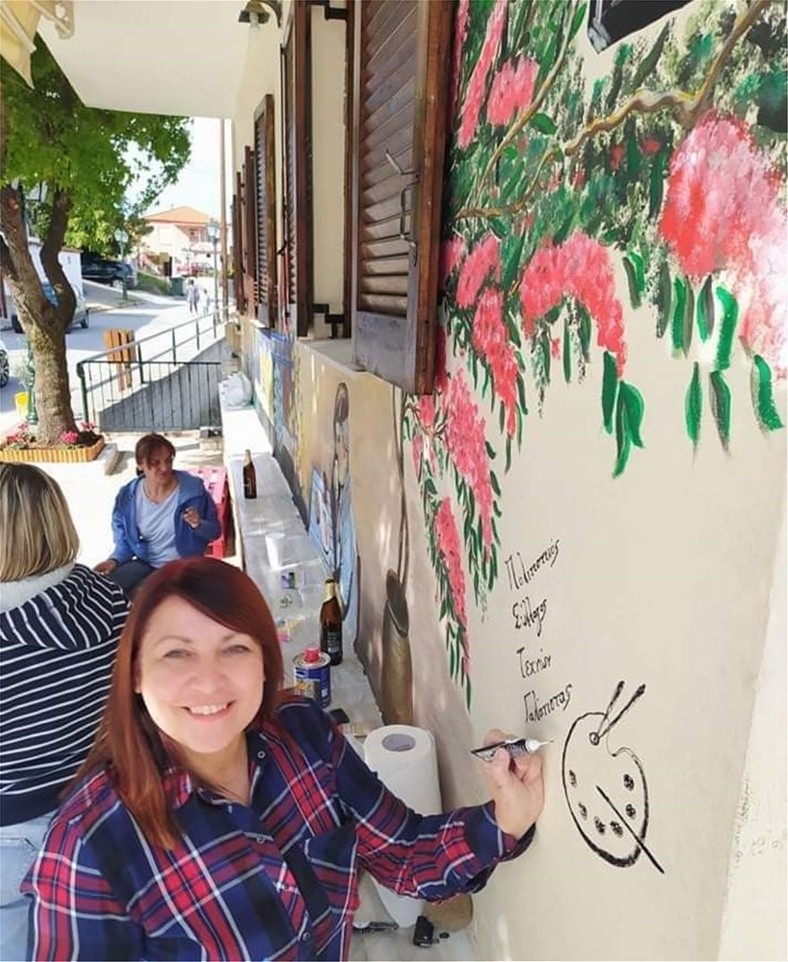 Αντίθεση στη μουντάδα του lockdown αποτελούν οι ζωγραφισμένοι τοίχοι παλιών κτιρίων της Παλαιόχωρας Χαλκιδικής χάρη στις εικαστικές παρεμβάσεις επτά γυναικών -μελών του Συλλόγου Τεχνών Γαλάτιστας.