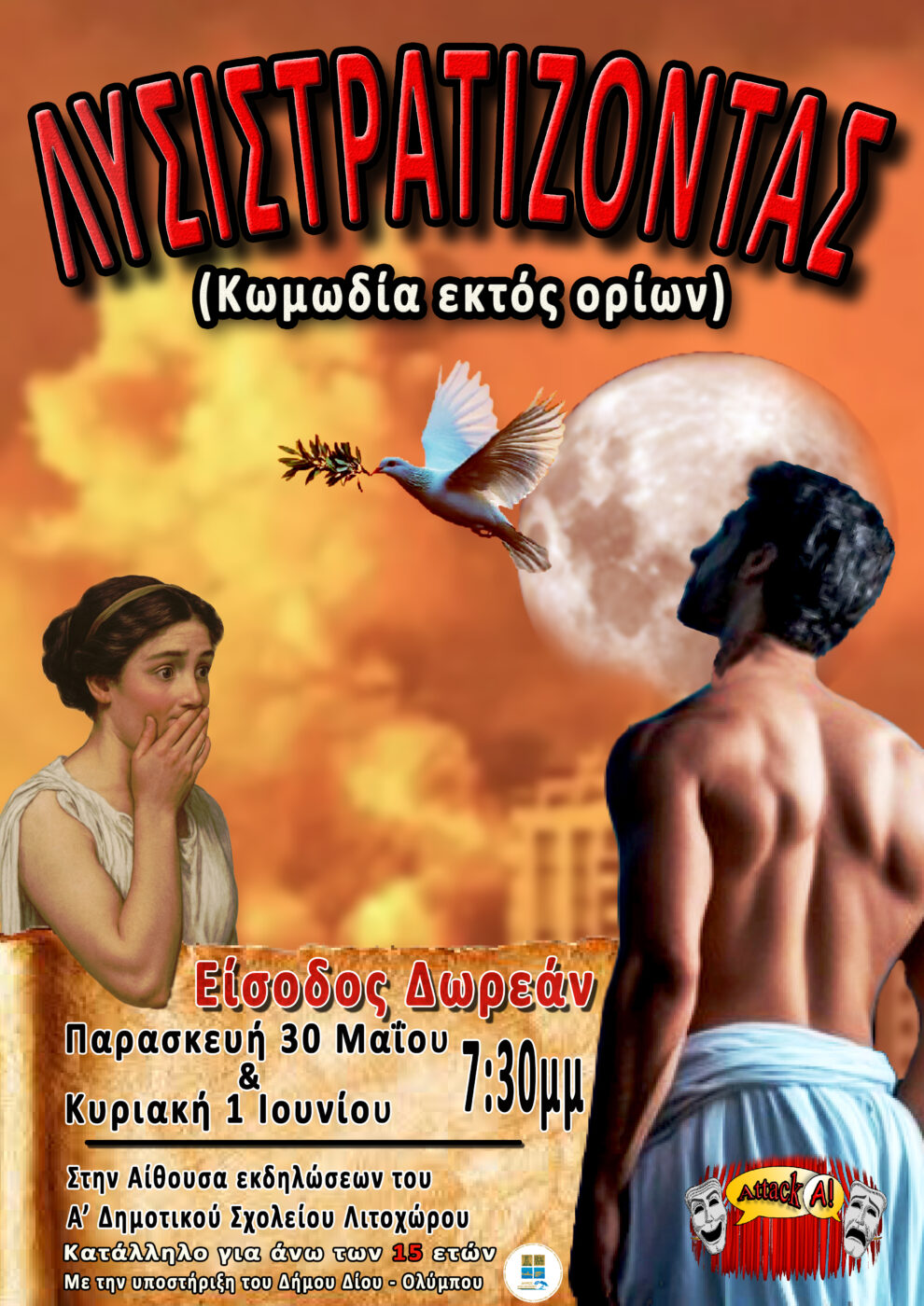 Μια εξωφρενική κωμωδία που δεν έχει ξαναπαιχτεί επί σκηνής, παρουσίαζει ο Μορφωτικός Θεατρικός Σύλλογος «Attack-a» την Παρασκευή 30 Μαΐου καί την Κυριακή 1 Ιουνίου στις 7:30μμ στην αίθουσα εκδηλώσεων του 1ου Δημοτικού σχολείου Λιτοχώρου.