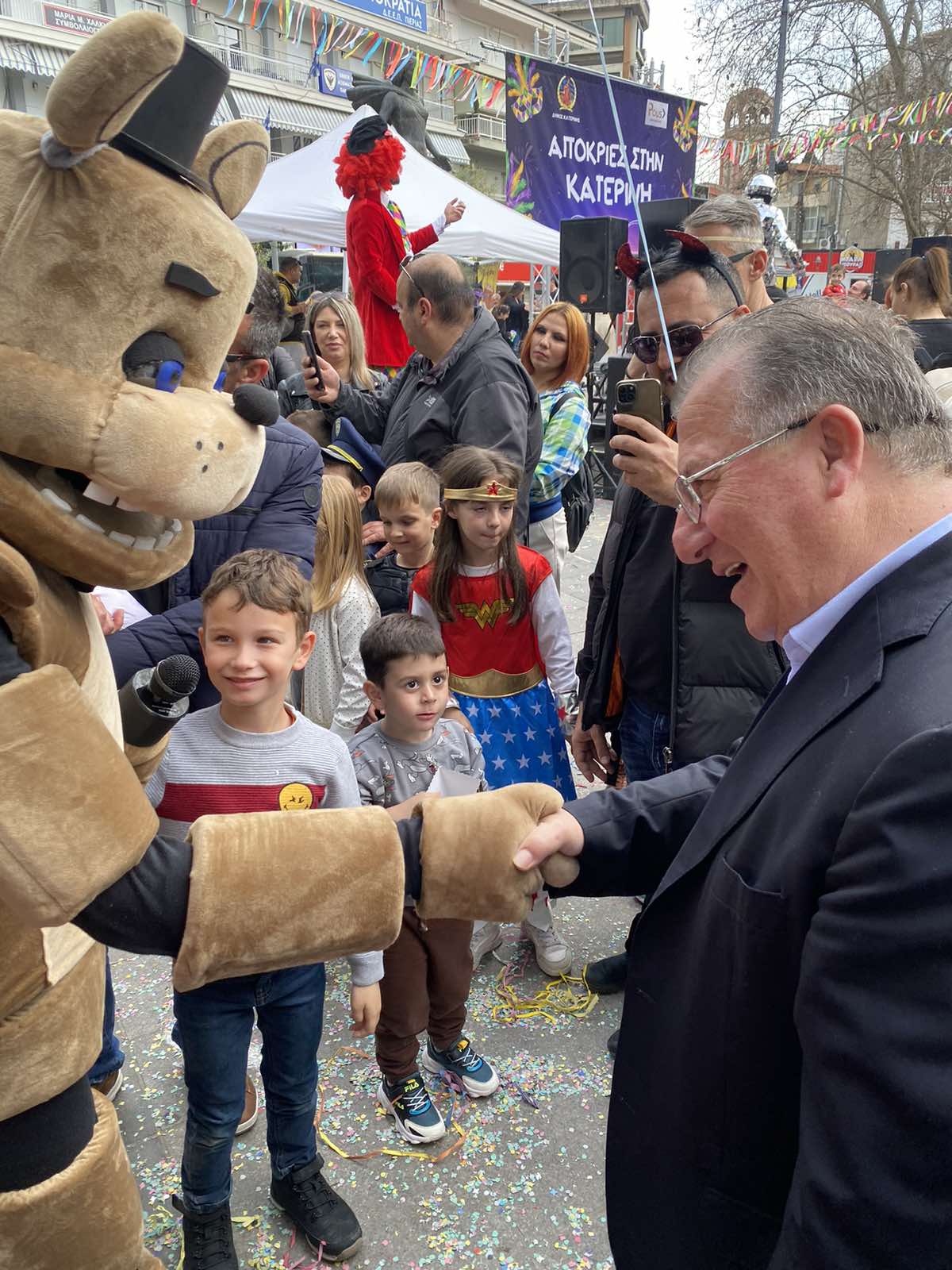 Συγκεκριμένα, ο Δήμαρχος, παρέστη σε όλες τις εκδηλώσεις, έγινε κοινωνός της χαράς ατόμων όλων των ηλικιών, ενώ είχε την ευκαιρία να συνομιλήσει και με τους ιδιοκτήτες καταστημάτων στο εμπορικό κέντρο, οι οποίοι εξέφρασαν την ικανοποίησή τους για την στήριξη της αγοράς. Οι αποκριάτικες εκδηλώσεις «MASQUERINI 2024» διοργανώθηκαν από την Αντιδημαρχία Πολιτισμού, με ευθύνη της αντιδημάρχου, Ελίνας Διαμαντοπούλου, η οποία απεύθυνε ευχαριστίες για την υποστήριξη των εκδηλώσεων προς τον πρόεδρο και το Δ.Σ. της «ΠΟΛΙΣ Κοινή ΑΕ ΟΤΑ», προς τις εμπλεκόμενες αντιδημαρχίες, τις υπηρεσίες και τα στελέχη του Δήμου, προς το Σωματείο Εστίασης Κατερίνης, τους πολιτιστικούς συλλόγους, την Διεύθυνση Αστυνομίας, την Πυροσβεστική Υπηρεσία, τη Δημοτική Αστυνομία, τους εθελοντές, τους χορηγούς και προς τους κατοίκους, επισκέπτες κ.ά. που αναταποκρίθηκαν στο κάλεσμα.