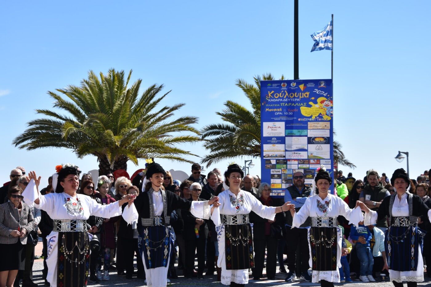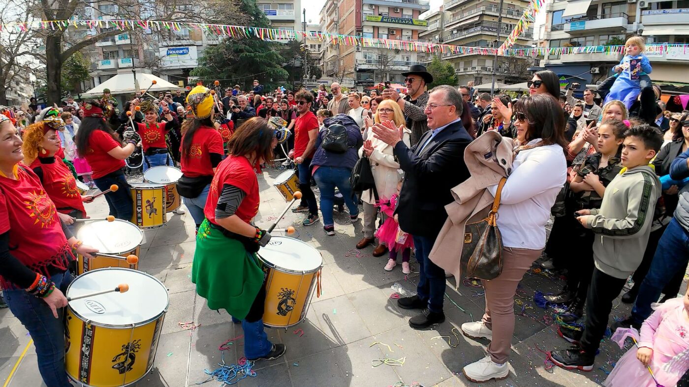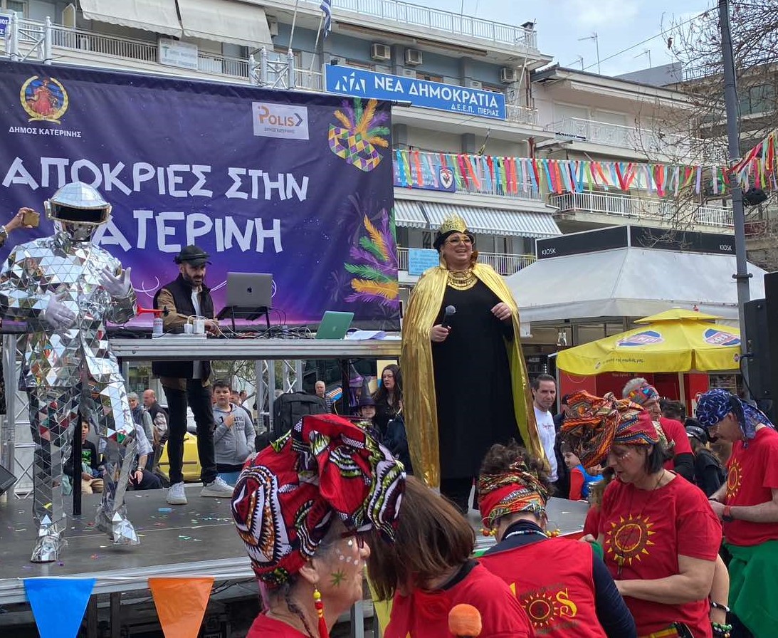 Το πρωί του Σαβββάτου 16/03, στον πεζόδρομο και στην πλατεία Ελευθερίας, σε ξέφρενο αποκριάτικο ρυθμό παρέσυραν με τους χορευτικούς ρυθμούς τους, οι AIDOS και με το ανεξάντλητο κέφι τους, ανιματέρ, διασκεδαστές, χορευτές, οι transformers, τα γυμναστήρια Magic & Bootcamp, o DJ Bilias κ.ά. Την εκδήλωση παρουσίασε η μοναδική EVA THE QUEEN. Face painting από τις Κόρες Πιερίων και κατασκευή χειροποίητης μάσκας από την κ. Θάλεια Centineo έδωσαν το δικό τους εορταστικό τόνο. Την έναρξη της γιορτής κήρυξαν ο Δήμαρχος, Ιωάννης Ντούμος, η αντιδήμαρχος Πολιτισμού /Τουρισμού, Ελινα Διαμαντοπούλου, ο πρόεδρος της «ΠΟΛΙΣ Κοινή ΑΕ ΟΤΑ», Γιώργος Μπαλαούρας και ο αντιπρόεδρος, Λευτέρης Παγωνίδης.