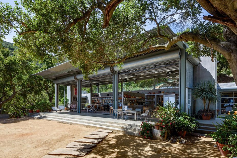 Εκτός από την κύρια κατοικία των 3 υπνοδωματίων, η ιδιοκτησία διαθέτει επίσης έναν ξενώνα, στούντιο, γκαράζ τεσσάρων αυτοκινήτων, καθώς και μια πισίνα 13,7 μέτρων. To σπίτι έχει βιομηχανικό στυλ και διατηρεί μια συνεχή σύνδεση με τον εξωτερικό χώρο, καθώς οι χαλύβδινες πόρτες ανοίγουν όπως οι γκαραζόπορτες, και το εσωτερικό ενώνεται με μια υπέροχη βεράντα. Οι πόρτες αυτές ασφαλίζουν επίσης το σπίτι σε περίπτωση πυρκαγιάς, δημιουργώντας ένα ασφαλές καταφύγιο.