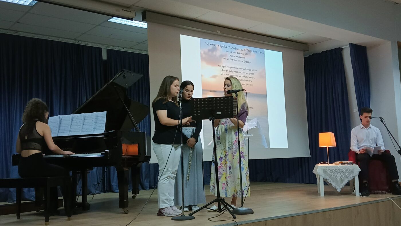 Επίσης, οι μαθητές και οι μαθήτριες παρουσίασαν το εκφραστικό τους ταλέντο με την απαγγελία ποιημάτων των Νίκου Γκάτσου, Οδυσσέα Ελύτη, Ιάκωβου Καμπανέλλη, Τάσου Λειβαδίτη, Γιώργου Σεφέρη κ.α., ενώ ταυτόχρονα υπήρχε προβολή έργων εικαστικής τέχνης που συμπλήρωνε την καλλιτεχνική ατμόσφαιρα.