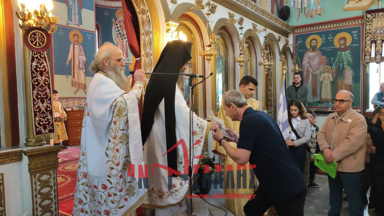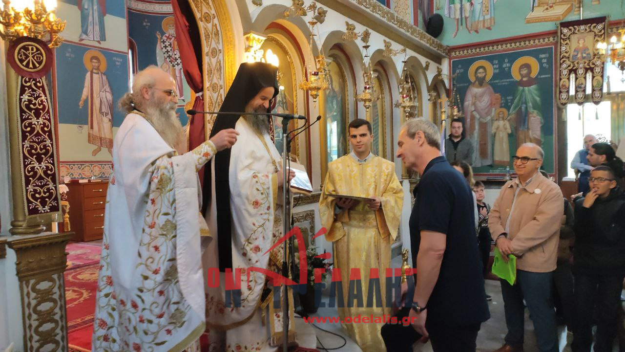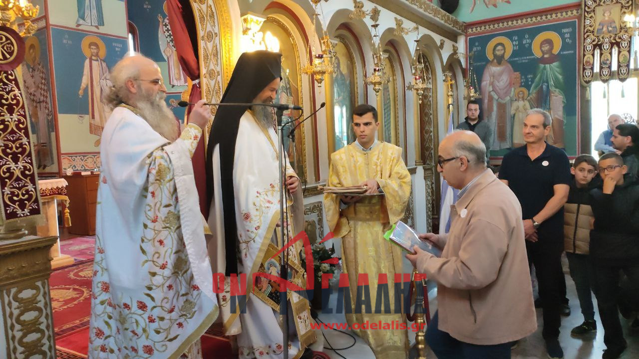 Μετά το πέρας της Πανηγυρικής Θείας Λειτουργίας, σήμερα το πρωϊ, στον Εορτάζοντα Ιερό Ναό της Αγίας Ειρήνης στη Νέα Χράνη, τιμήθηκαν δύο εκπαιδευτικοί για την προσφορά τους στο Δημοτικό σχολείο του χωριού.