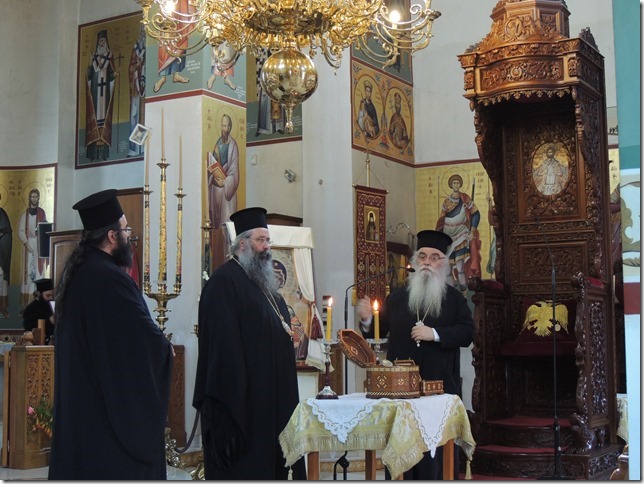 Η καθηγουμένη της Ι. Μονής Γερόντισσα Ευφραιμία υποδέχθηκε τον Σεβασμιώτατο και τις προσκυνήτριες με θέρμη και μίλησε για την ιστορία της Μονής και το θαυμαστό βίο της Οσίας Σοφίας, αναφέροντας μάλιστα αρκετές από τις διδαχές της. Αφού πραγματοποιήθηκε προσκύνηση του Ιερού Λειψάνου της Αγίας ακολούθησε επίσκεψη στο κελί της Αγίας και κατόπιν στο αρχονταρίκι της Μονής, όπου μετά από παράκληση του Σεβασμιωτάτου κ. Γεωργίου μίλησε στις φοιτήτριες ο συνταξιούχος ιερέας π. Νικόλαος, παλαιός εφημέριος της Ι. Μονής, ο οποίος γνώριζε της Αγία και ανέφερε θαυμαστά περιστατικά που ο ίδιος έζησε.