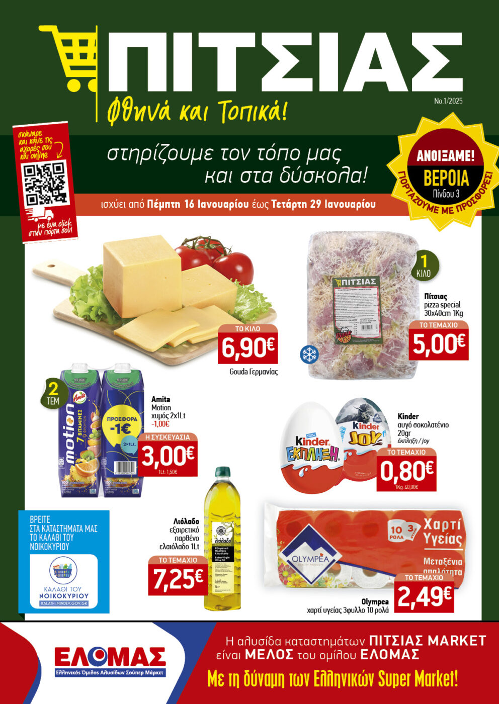 Νέο Φυλλάδιο με τις καλύτερες προσφορές στα ΠΙΤΣΙΑΣ ΜΑΡΚΕΤ από 16/01 έως & 29/01