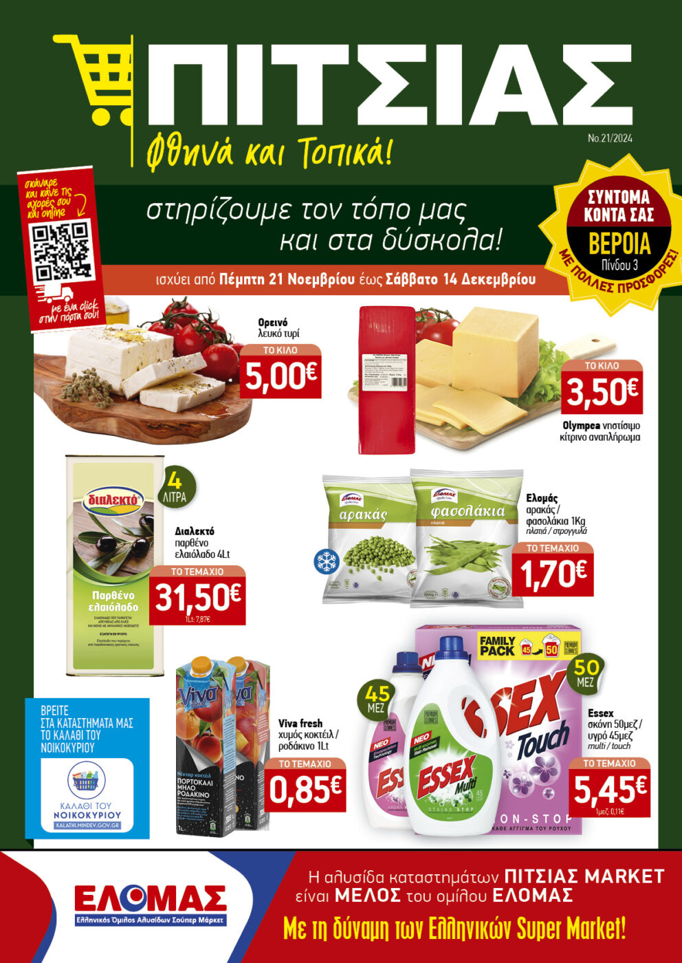 Νέο Φυλλάδιο ΠΙΤΣΙΑΣ ΜΑΡΚΕΤ – Φθηνά και τοπικά με προσφορές από 21/11 έως & 14/12