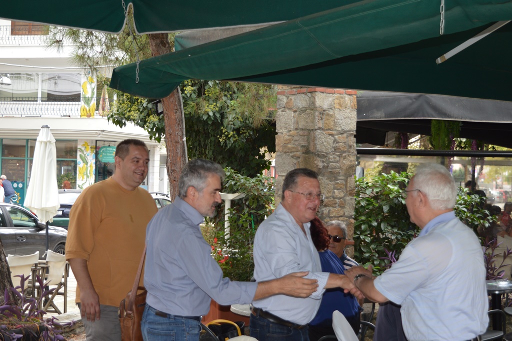 Ο κ. Ντούμος συνοδευμένος από τον πρόεδρο του Σωματείου Εστίασης Κατερίνης και υποψήφιο δημοτικό σύμβουλο με τον συνδυασμό ΔΗΜΟΣ ΠΡΟΤΥΠΟ-ΓΙΑΝΝΗΣ ΝΤΟΥΜΟΣ, Βασίλη Αγιαννίτη και τον αντιπρόεδρο επίσης υποψήφιο περιφερειακό σύμβουλο Κεντρικής Μακεδονίας του συνδυασμού του Απόστολου Τζιτζικώστα, Δημήτριο Καραβιδέ, καθώς και με υποψηφίους τοπικούς και δημοτικούς συμβούλους του ΔΗΜΟΣ ΠΡΟΤΥΠΟ, περιόδευσε σε καταστήματα εστίασης και όχι μόνο.