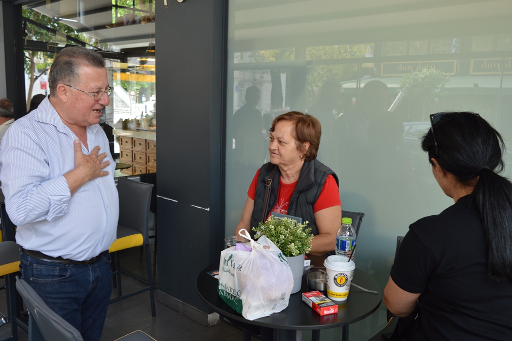 Πέρα των ευχών που δέχτηκε για την εκλογική επιτυχία στις επικείμενες δημοτικές εκλογές, το θερμό κλίμα που αντίκρυζε και με το οποίο εγένετο δεκτός παντού και από όλους, ο Γιάννης Ντούμος συζήτησε για τα θέματα της καθημερινότητας, τα ζητήματα του κλάδου της εστίασης και του εμπορίου, καθώς και τα προβλήματα της πόλης.