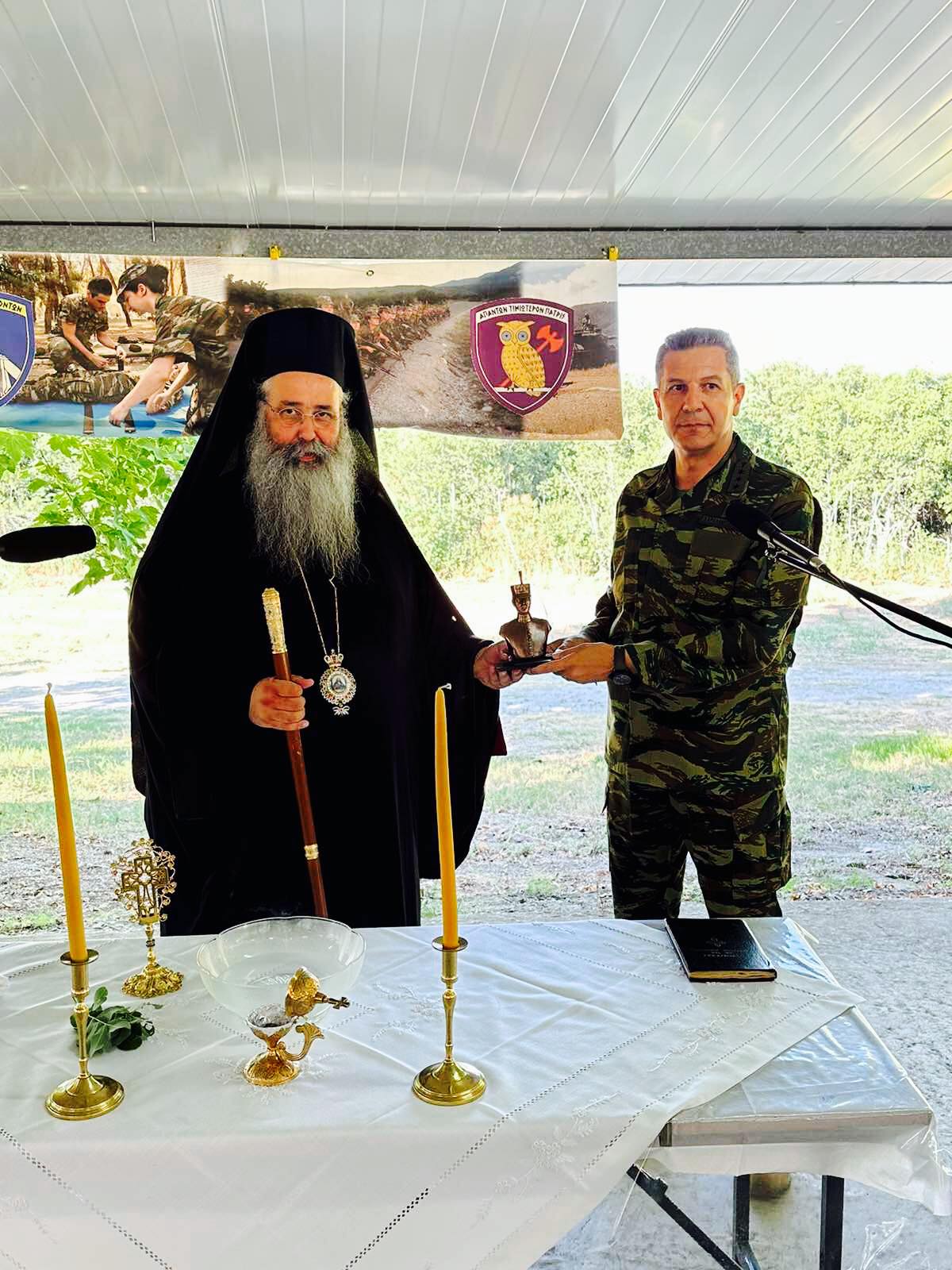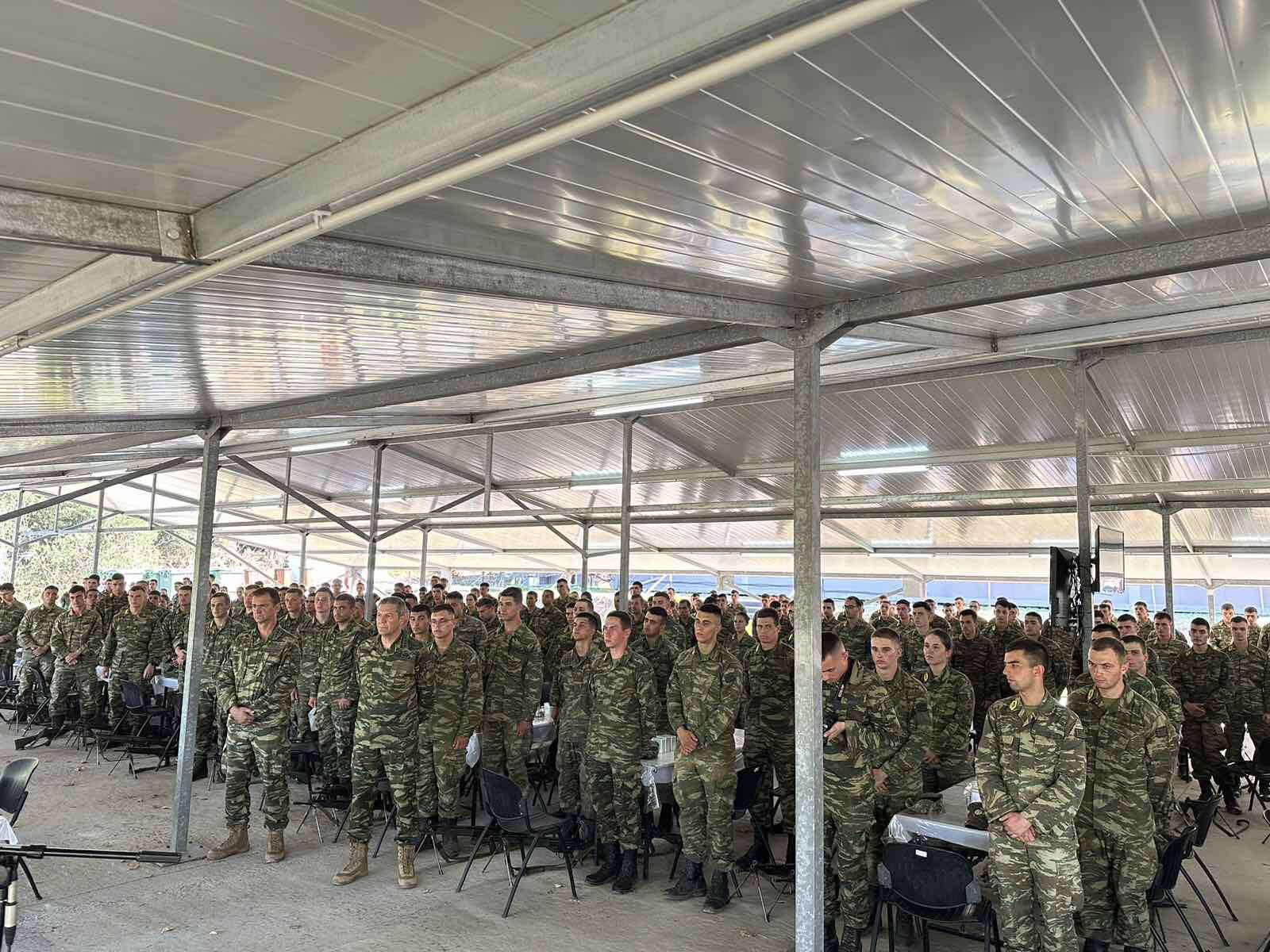 Τον Σεβασμιώτατο υποδέχθηκαν ο Διοικητής του Κέντρου Εκπαίδευσης και ο στρατιωτικός ιερέας π. Σεραφείμ Καλτσουκαλάς. Ακολούθησε αγιασμός, σύντομη ομιλία.